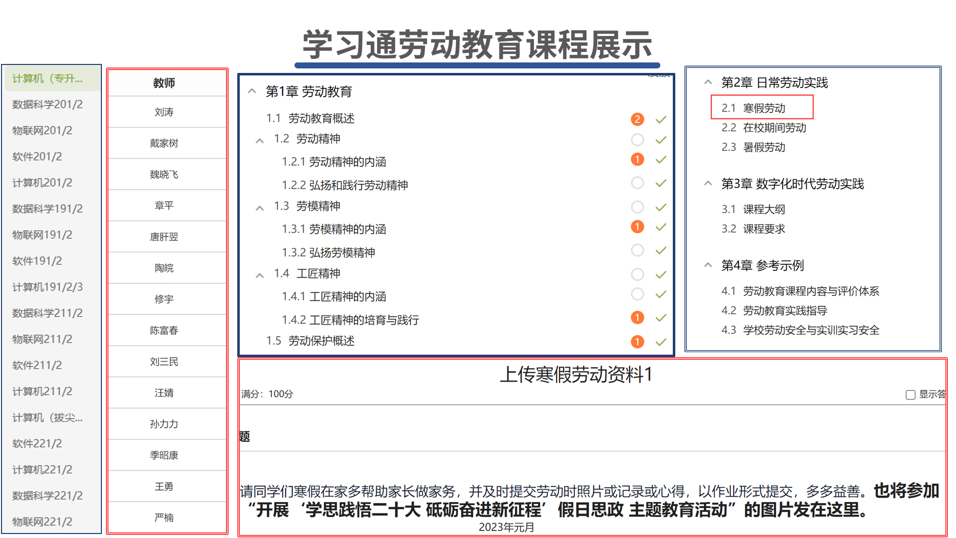 劳动教育是培养全面发展人才的重要途径和有力保障,计算机与信息学院将持续落实把劳动教育纳入人才培养的全过程,构建“五育并举”的教育体系,以劳动主题教育树立学生劳动意识,以日常劳动培养学生劳动习惯,以专业实践锻炼学生劳动能力,围绕“三全六专”育人工作——让学生“勤”起来,凸显劳动教育学科的独立性和通过劳动教育来育人的价值导向。