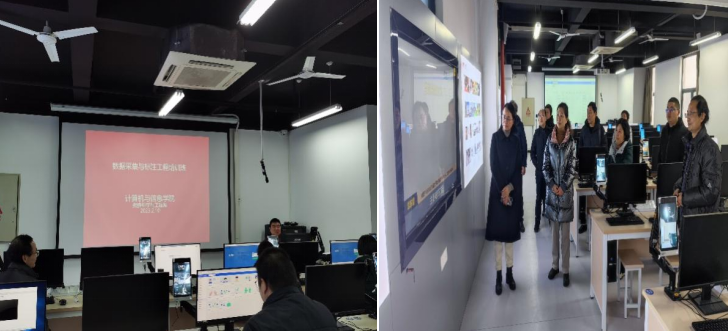 计算机与信息学院在学校的大力支持下于2023年1月完成了智能工业全产业链数智化实践平台、产业学院数据采洗标、嵌入式系统、智能信息处理平台四个新建实验室建设。为进一步支持一流专业建设和工程教育认证,提升学院教师工程实践能力,在学院统一安排下由各系按专业方向在相应实验室组织开展了系列技术研修培训。