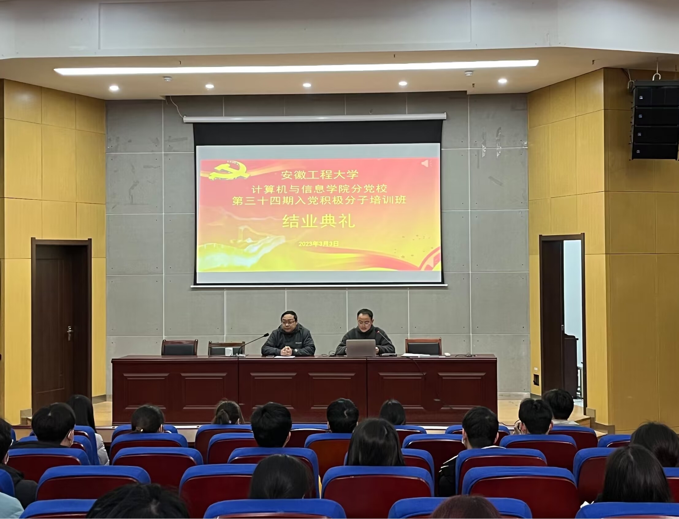 3月3日,计算机与信息学院分党校举行第三十四期入党积极分子培训班结业典礼。学院党委书记李卫东出席,培训班全体学员参加。典礼由班主任陈涛主持。