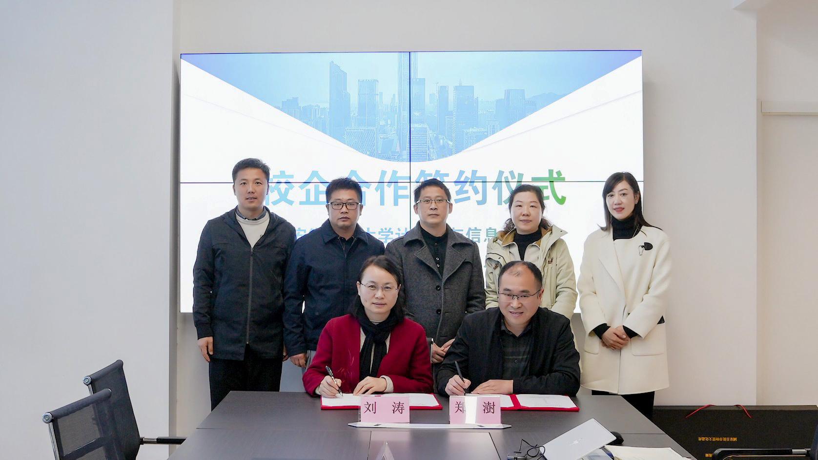 会上,郑澍围绕“云上岳西,康养福地”主题,介绍了皖岳集团的情况,强调智能科技的引入是促进集团发展,实现数字化赋能的重要方向。刘涛宣传了学院各专业的招生情况,强调了学校开展产教融合、科教融合的重要性,表达了希望加强交流、建设创新实践与实习就业基地等深入开展校企合作的愿望。随后,刘三民从本科教育、产教融合与创新创业教育、科研与学科建设、师资队伍与省级育人平台等方面介绍了学院的基本情况,阐述了联合建设数智化乡村振兴现代产业学院的构想。王勇肯定了计算机相关学科对集团数智化建设的重要意义,希望以校企合作为抓手,开展示范性项目的落地,并进而推进乡村振兴现代产业学院的建设。最后,双方进行了校企合作协议签约仪式。