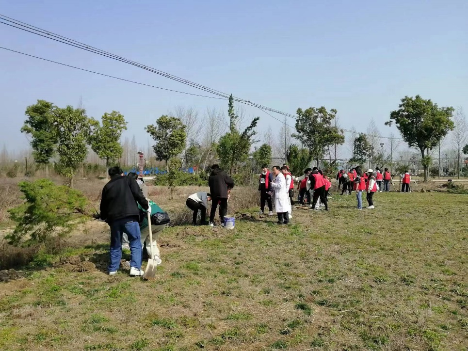 在义务植树主题实践活动中,研究生支部三人一组,分工协作、挥锄铲土、挖坑下苗、扶树培土、填土施肥、提水灌溉有条不紊,现场洋溢着团结、互助、友爱的氛围。短短的3小时,在大家齐心协力地工作下,48棵小青松迎风而立,呈现出昂扬的精神状态。