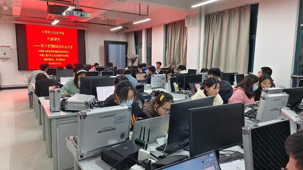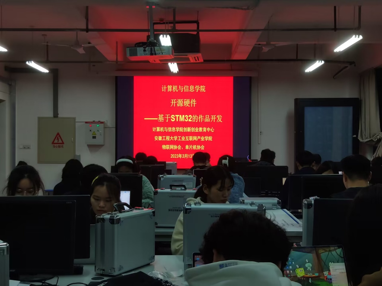 3月13日晚,开源硬件之STM32嵌入式开发训练营在C703实验室开展首期培训,本次训练营由计算机与信息学院创新创业教育中心、RayBetApp官网下载 工业互联网现代产业学院、物联网工程专业、物联网协会与单片机协会共同举办,协会指导老师章平、陈欢主讲。根据计划训练营将连续开展5周活动,旨在以产业需求为导向进行教育教学,让学生在了解STM32开发板使用流程的同时能够利用STM32开发板进行嵌入式开发,增强学生参与学科竞赛和提升就业竞争力,提高学生个人素质。