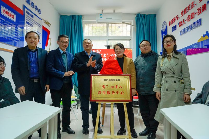 为落实学校党委“三抓”工作要求,深入推进“三全六专”育人实践,提升学生社区育人功能,3月16日下午,计算机与信息学院在男生宿舍12栋102举行“寓”心育人青年服务中心启动仪式。校党委常委、组织部部长王弘、学生处处长黄炜、心理健康教育中心副主任金艾裙、后勤保障处副处长卢学根到场指导,学院党委书记李卫东、党委副书记孙德茹、辅导员和学生心理委员、寝室长代表参加活动。启动仪式由孙德茹主持。