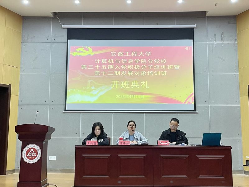 为深入学习宣传贯彻党的二十大精神,落实学校“三全六专”工作要求,进一步增强发展对象和入党积极分子思想觉悟和理论素养,端正入党动机,引导学生积极向党组织靠拢,4月14日,计算机与信息学院分党校举行第三十五期入党积极分子培训班暨第十二期发展对象培训班开班典礼。院党委副书记孙德茹、第十二期发展对象培训班班主任陈涛、第三十五期入党积极分子培训班班主任王鸣鹃及全体学员参加。开班典礼由陈涛主持。