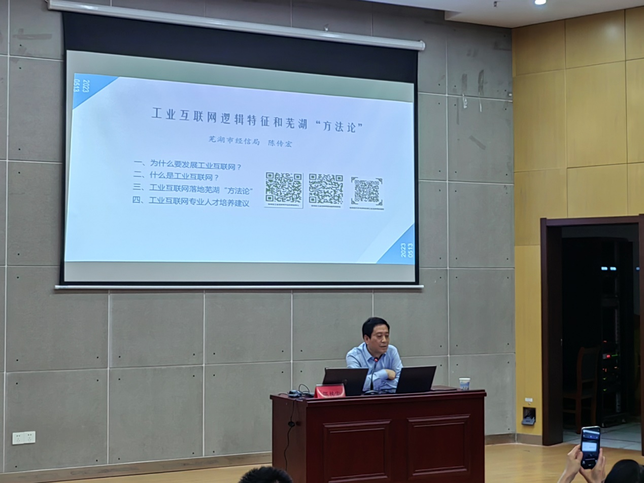 2023年5月13日下午,应计算机与信息学院、科技处、研究生部邀请,芜湖市经济和信息化局总工程师、副局长、二级调研员陈传宏在计算机与信息学院报告厅做了题为“工业互联网的逻辑特征和芜湖‘方法论’”的学术报告。该报告由计算机与信息学院副院长王勇主持,计算机与信息学院院长汪军、副院长刘涛,学院部分教师,研究生和本科生参加了此次报告会。