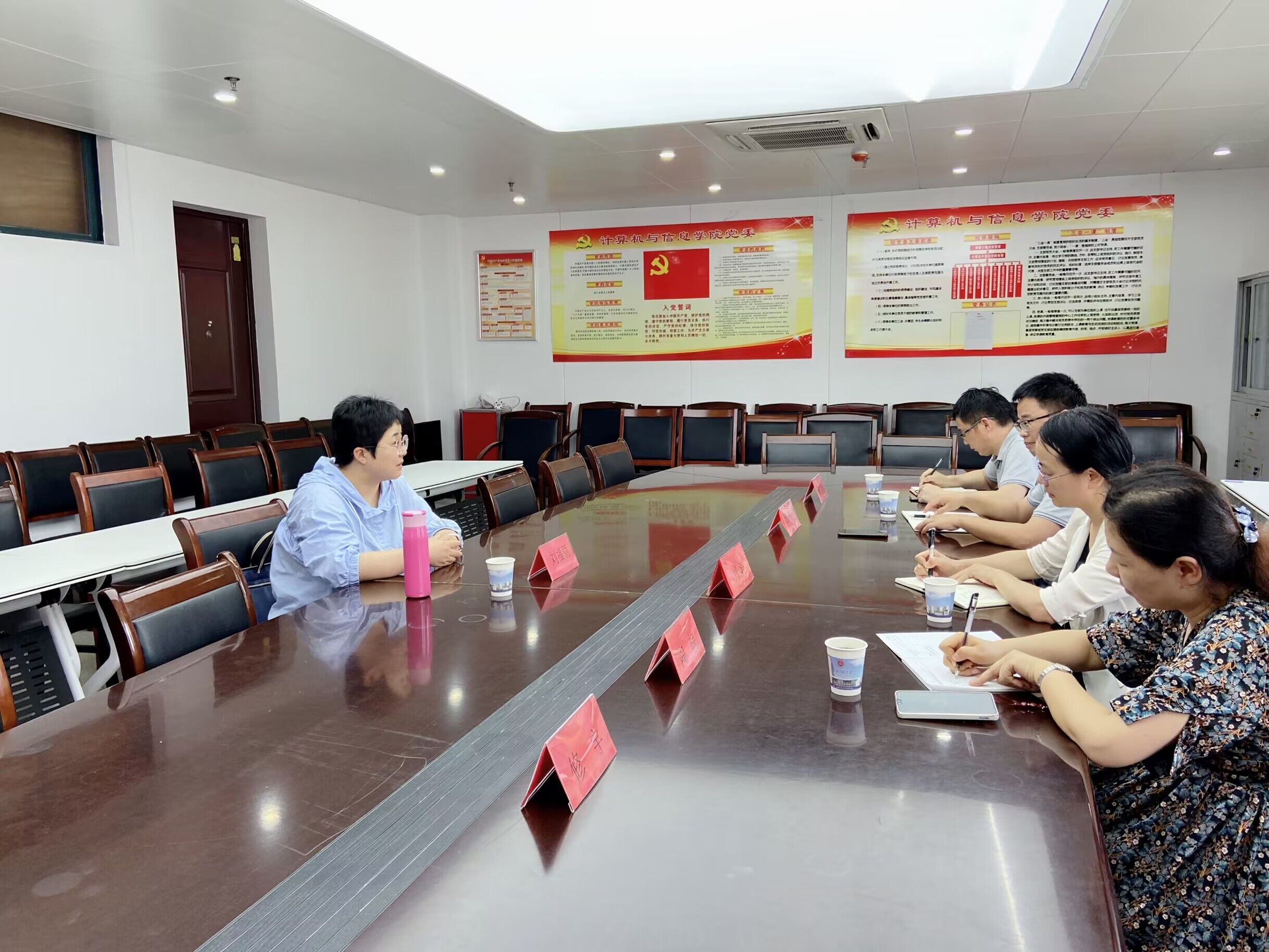 座谈会上,刘涛首先代表学院对刘福丽的来访表示热烈欢迎,并介绍我院的发展历程和学科专业建设情况。王勇对我院目前的科研进展进行了汇报,陶皖对我院在大数据领域所取得的成绩以及相关研究基础进行了汇报,刘福丽对我院取得的成绩表示肯定,并介绍了芜湖市数据资源管理局管理的业务,特别是和我院专业密切相关的案例。双方对以后进一步的合作方向开展了讨论。