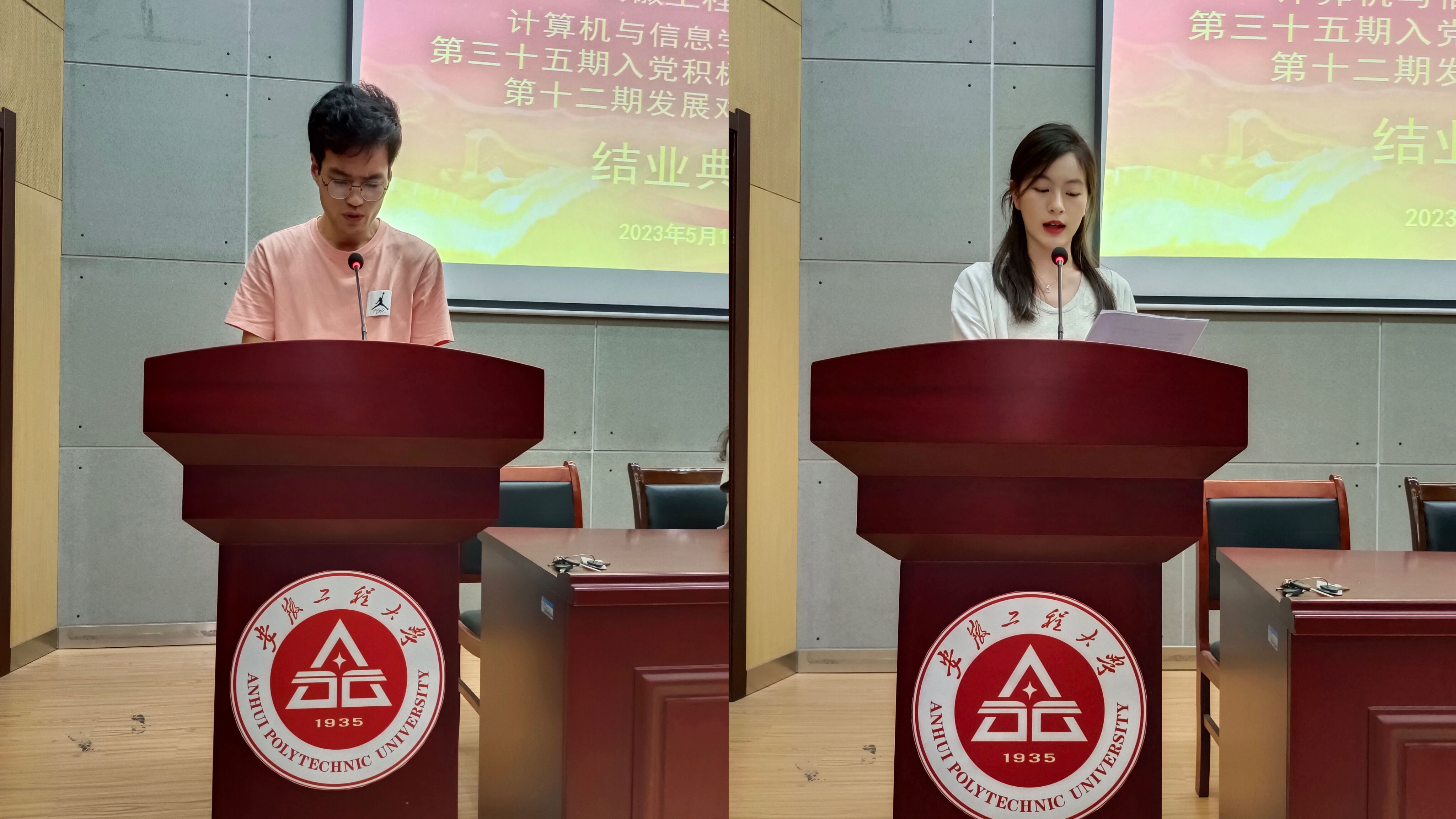 积极分子培训班优秀学员代表魏宏婷同学和发展对象培训班优秀学员代表吴奥同学分别发言,总结了他们在党课中的学习收获和感悟,他们表示以党校结业为新起点,在今后学习生活中时刻做到言行一致、知难而上,争取早日成为一名中国共产党员。