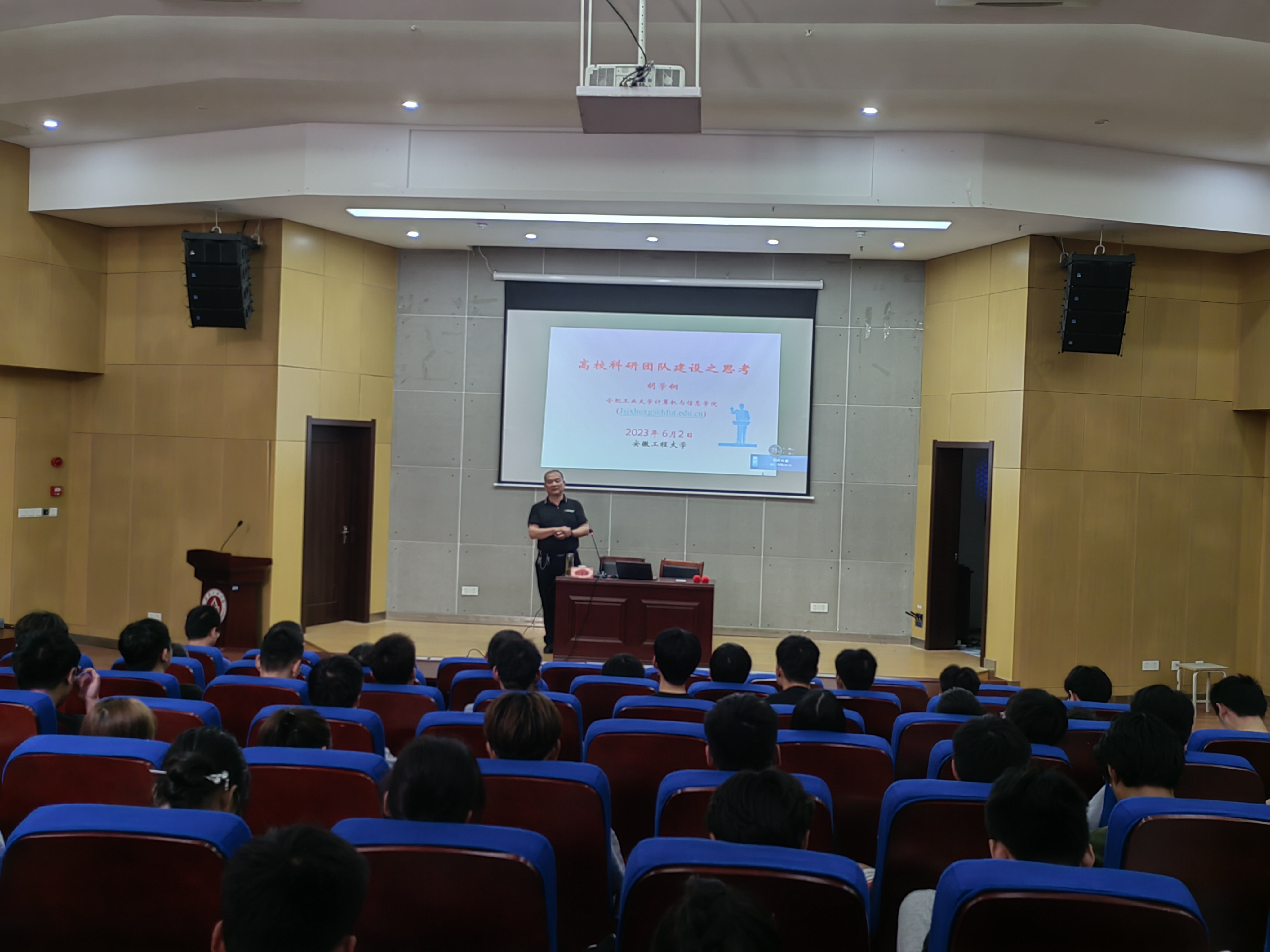 胡学钢以“高校科研团队建设之思考”为题,从高校教师发展要点、科研团队建设“五要素”、国家自然科学基金项目的申报和研究、研究生科学研究能力培养四个方面出发,为我院教师和研究生做了一场精彩的学术讲座。该报告具有很强的针对性和启发性,使在座的教师更深入地理解了如何开展科研以及如何提升研究生培养质量。这场讲座对于我院科研团队建设和研究培养生具有很强的指导作用。