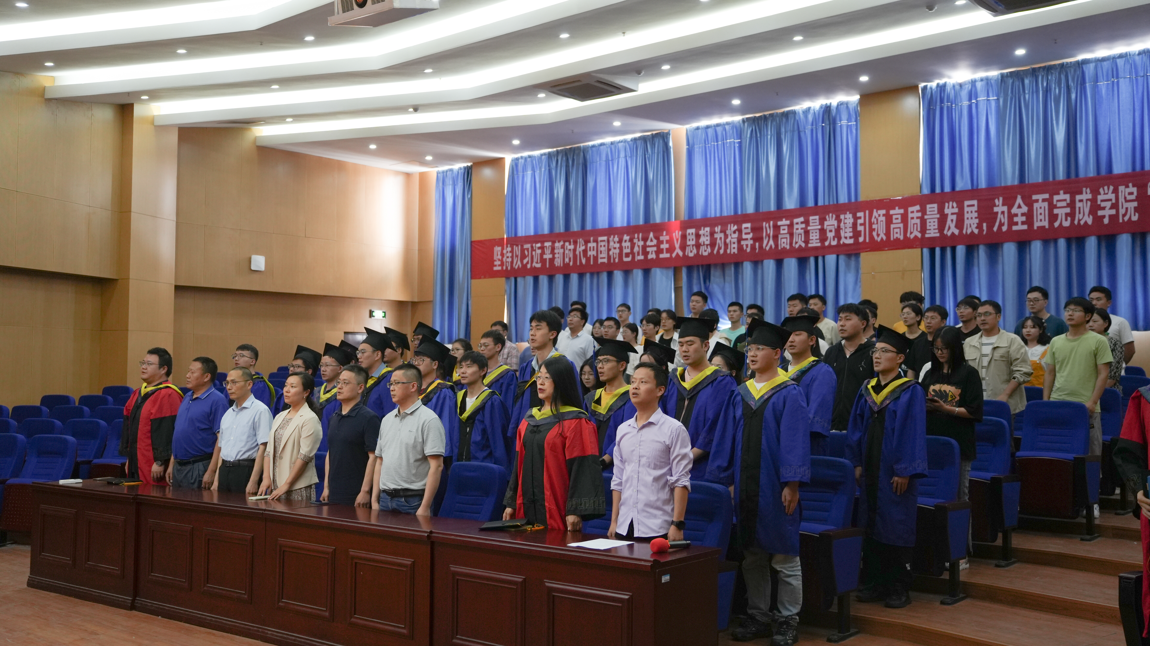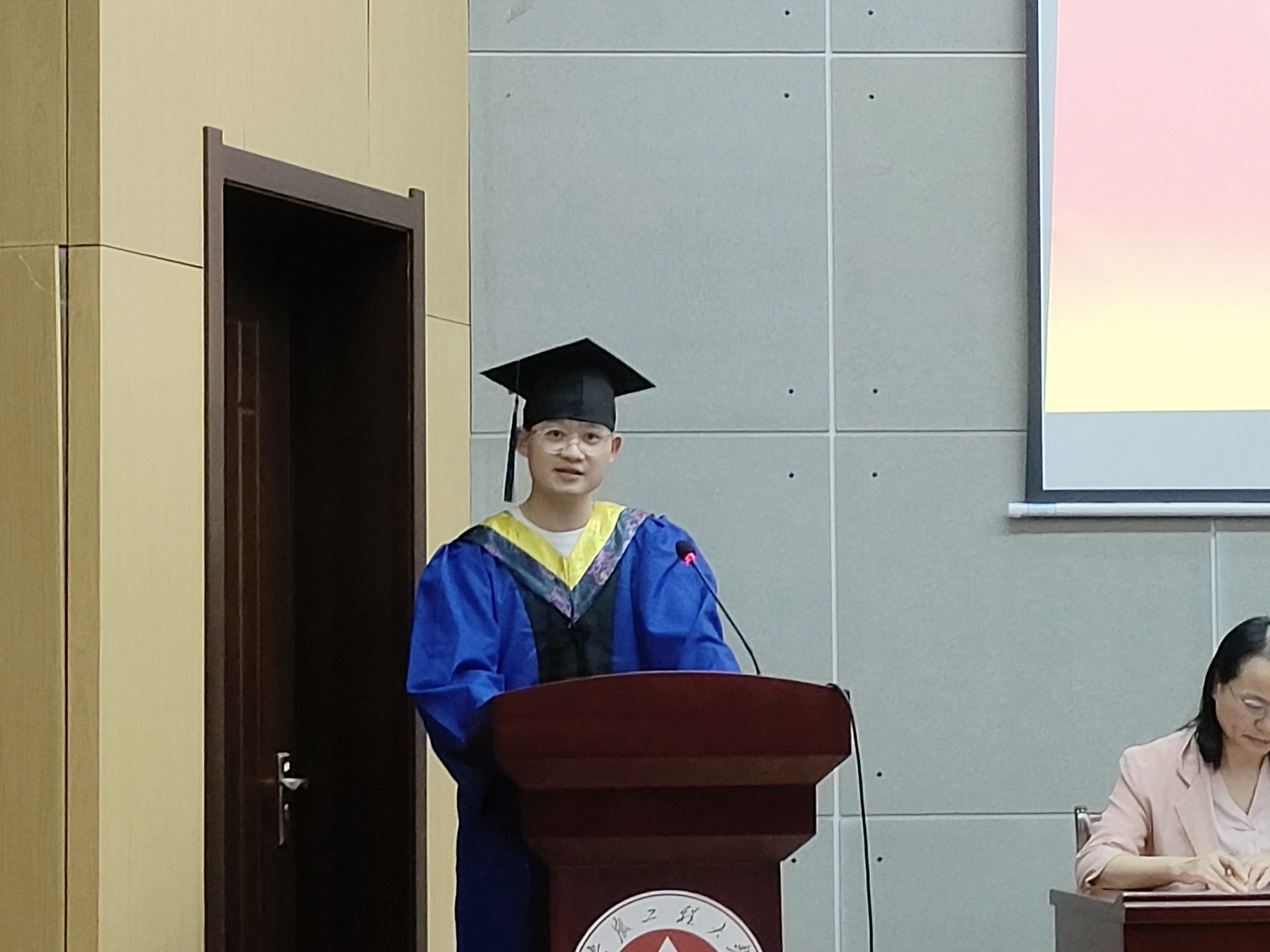 毕业生代表赵金标在发言中分享了研究生阶段的成长经历和求学心得,表达了对母校、母院,以及导师精心培育的感激之情。他代表毕业生表示一定会在未来的道路上继续保持勇气和拼搏的精神,不断追求卓越和创新,为祖国和人民作出更大的贡献。