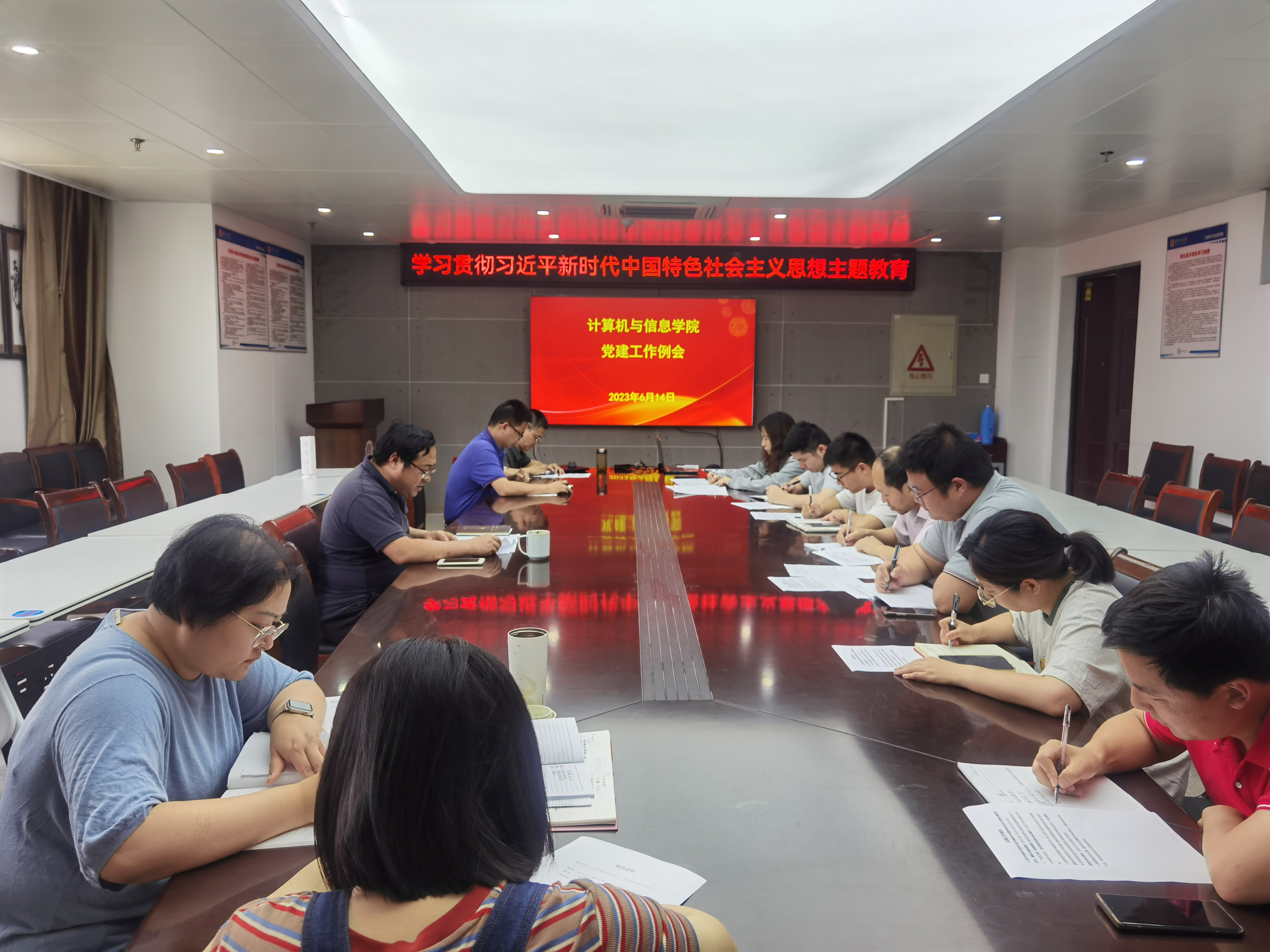 为深入开展学习贯彻习近平新时代中国特色社会主义思想主题教育,推动主题教育走深走实、入脑入心,6月14日,计算机与信息学院党委召开六月份党建工作例会暨“三问”专题研讨会,学院领导、各支部书记、组织员、院办主任、团委书记参加会议。会议由院党委书记李卫东主持。
