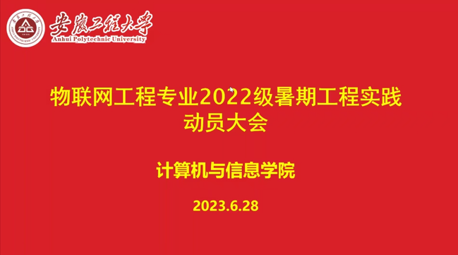 为更好推动暑期工程实践,2023年6月28日晚,物联网工程系通过腾讯会议平台召开暑期工程实践动员大会,大会由刘三民主持。计算机与信息学院副院长刘涛、专业教师和物联网工程专业2022级全体学生参加。