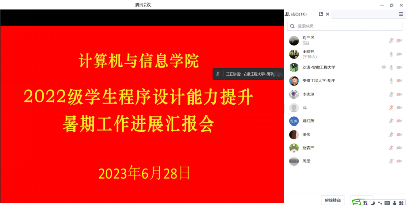 为更好推动2022级暑期工程实践的进行,2023年6月28日计算机与信息学院召开程序设计能力提升暑期工程实践工作进展汇报会。会议由刘涛副院长主持,学院教授数据结构教师、教学办公室主任等参加。