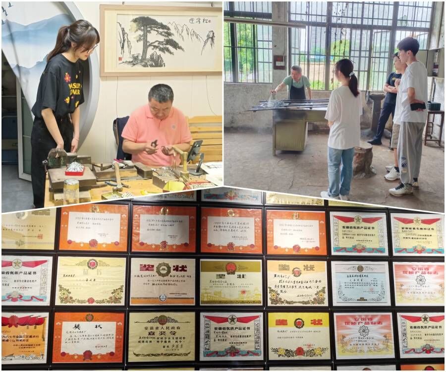 在采访过程中,铁画大师详细介绍了铁画制作的相关材料、工艺流程及铁画的发展前景,并现场演示了锻铁的过程。铁画传承人还向队员们展示了铁画博物馆的荣誉墙,他们希望铁画艺术能够得到更好的传承与创新。