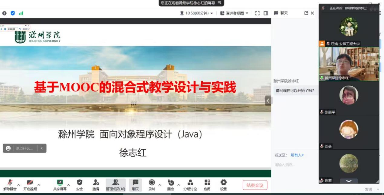 为提升我院教师课程建设能力,7月24日,滁州学院国家级一流课程负责人徐志红副教授应邀做《基于MOOC的混合式教学设计与实践》专题报告。本次报告由副院长刘涛主持,我院全体教师线上线下参加本次报告会。