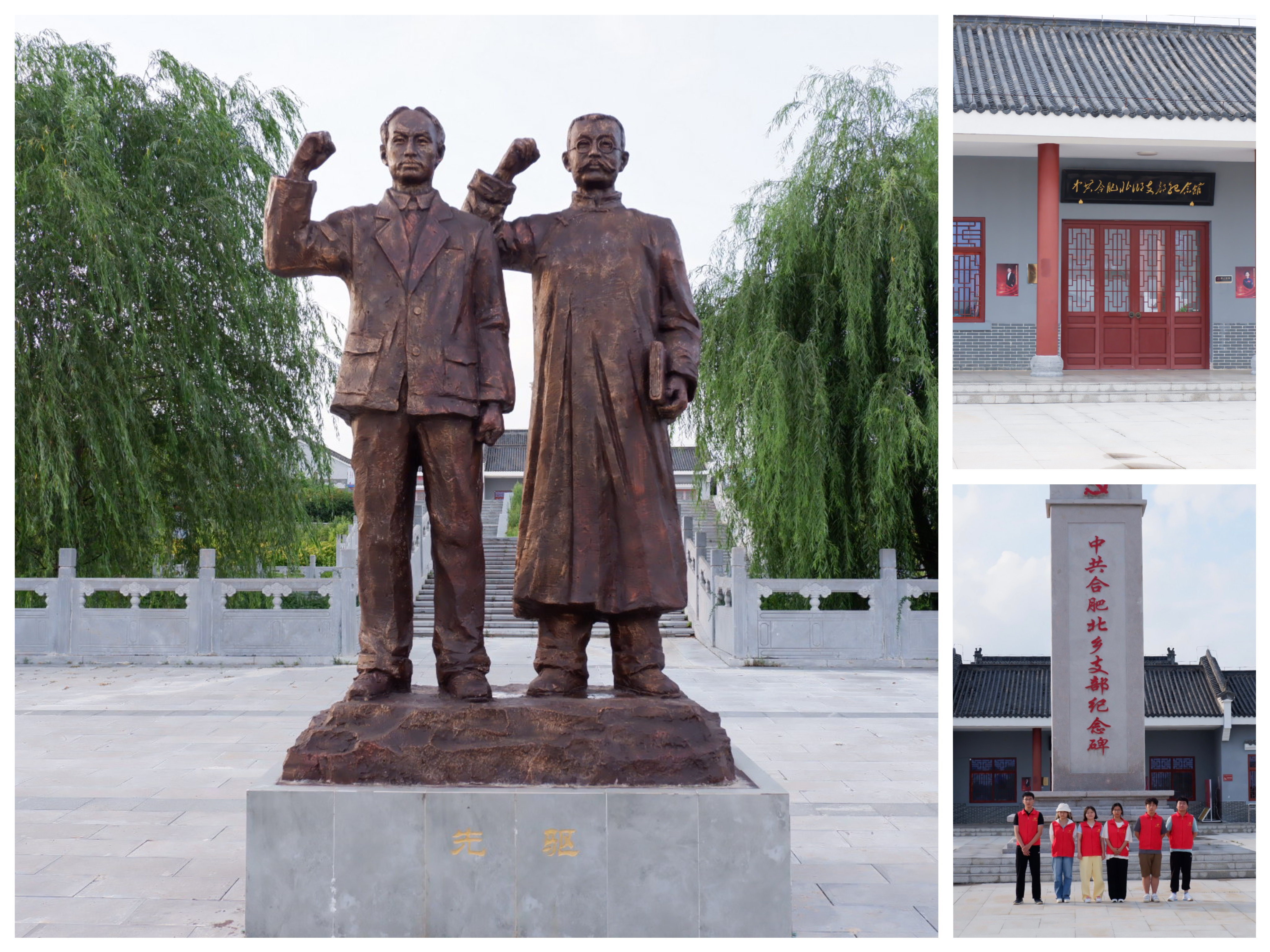 心里有光,眼前有路,知所从来,方明所趋。成员们跟随着村干部的脚步来到中共合肥北乡支部纪念馆参观,中共合肥北乡纪念馆是为纪念合肥长丰地区第一个中国共产党组织而建,广场前壮观的纪念碑仿佛将每位成员带回到那段无数革命先烈们在这片红色的土地上发动革命时抛头颅、洒热血的年代,革命先烈们用鲜血和生命撒下的火种,点燃了江淮大地农民运动的熊熊烈火,激励着千千万万革命人民投身于革命。这不仅是那段艰苦岁月的见证者,更是对崇高无私、不怕牺牲的精神传承。