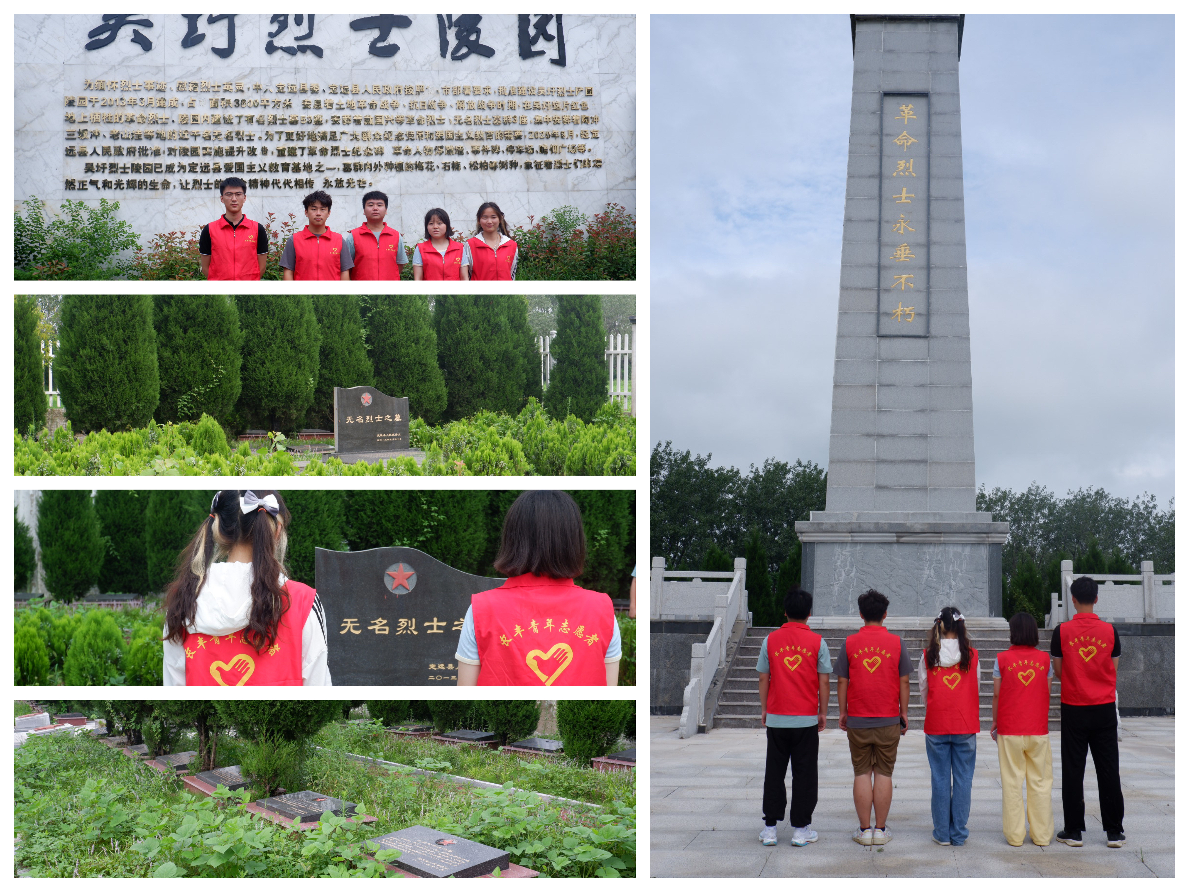 在村干部的带领下成员怀着崇敬之情来到吴圩烈士陵园来悼念革命烈士们,吴圩烈士陵园是为纪念在宿北战争中牺牲的烈士们而修建,成员们依次在纪念碑前悼念烈士、并给烈士墓献花、鞠躬,在肃静的氛围中寄托着延绵不绝的哀思之情,同时也昭示这我们青年人要奋发图强。