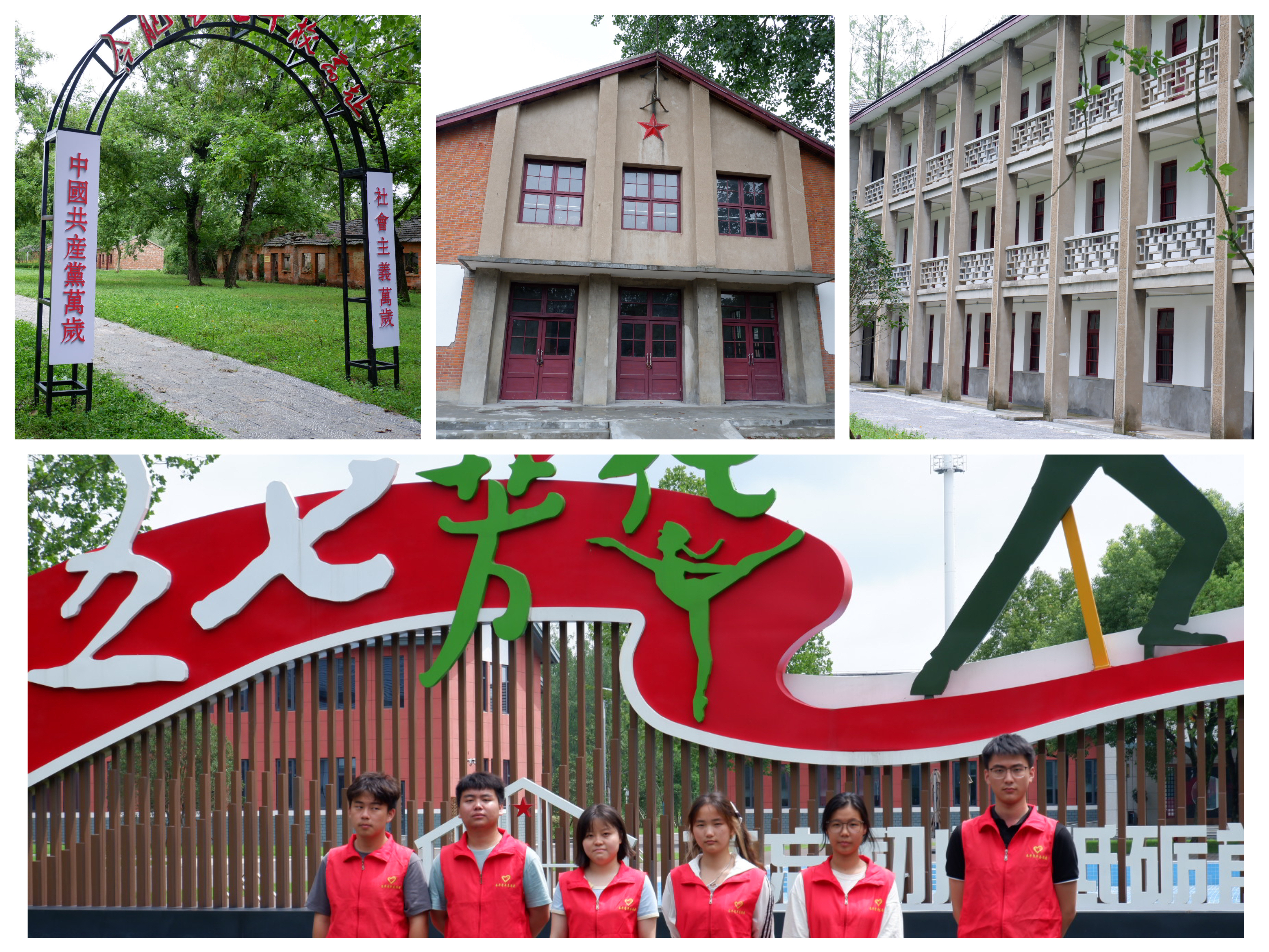 几栋红砖瓦房掩映在绿树之中,汇聚了众数党员干部和知识学者在此为人民服务的身影。成员们跟随着村干部来到长丰县五七干校,在村干部的讲解下,团队成员们了解了这里的历史。