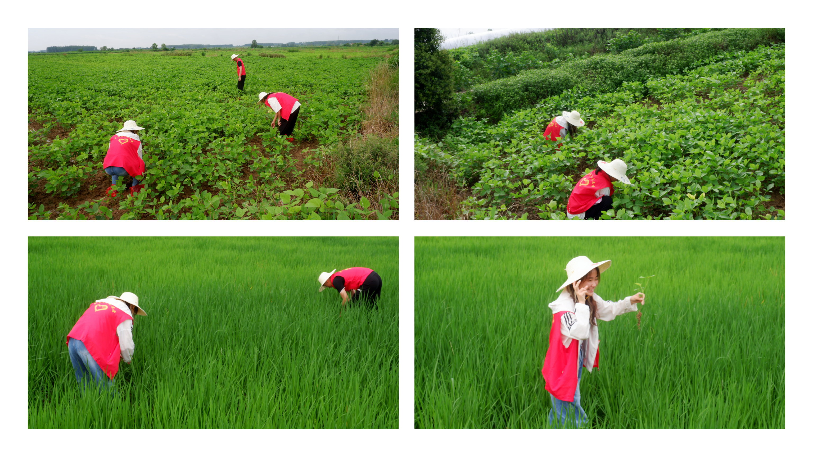 在有针对性的对杂草的种类进行筛选之后,成员们便开始了深入田地帮助农民除杂。在烈日之下,成员们在田间地头躬身劳作,为种植的农作物除草的身影构成一幅最美好的画面,成员们也亲身劳动体验了农耕的辛劳与乐趣。经过合力除草后,田地也焕发着新的生机和活力。
