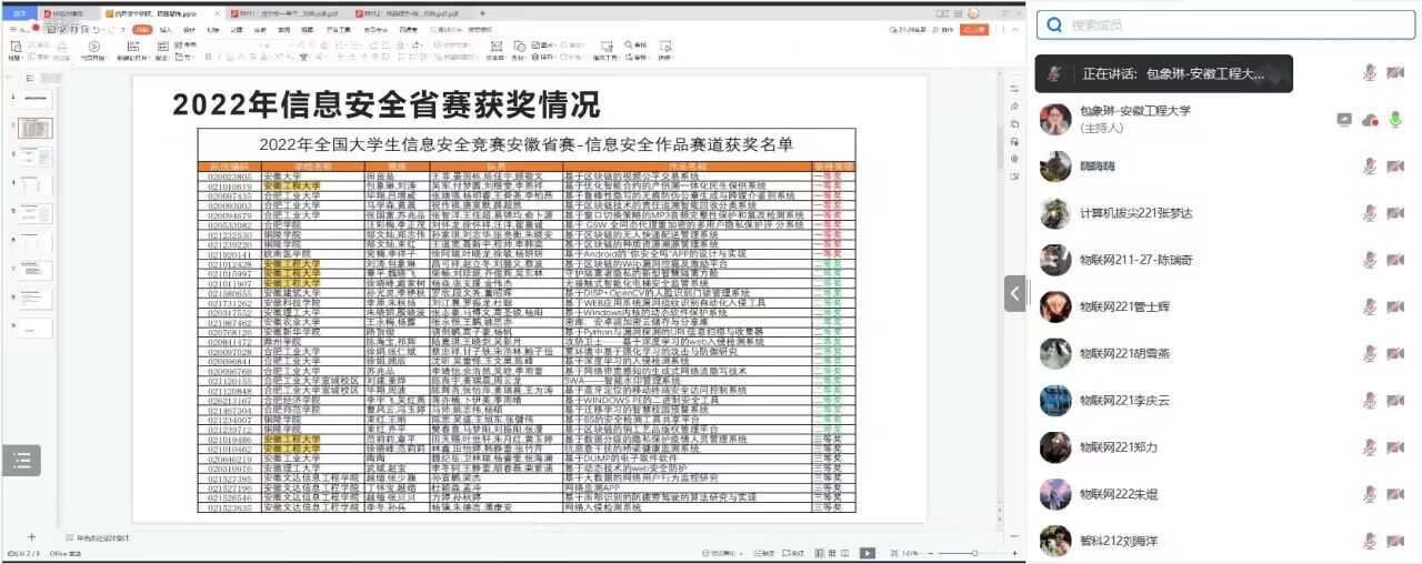 关于“如何寻找信息安全加固角度”,包象琳通过对往年信息安全竞赛报告展开讲解,从实例作品中去寻找,更加客观。此外此次会议还为今年全国大学生信息安全竞赛作筹备。信息安全攻防方面,老师提供靶场和相关学习视频供有意向的同学学习。