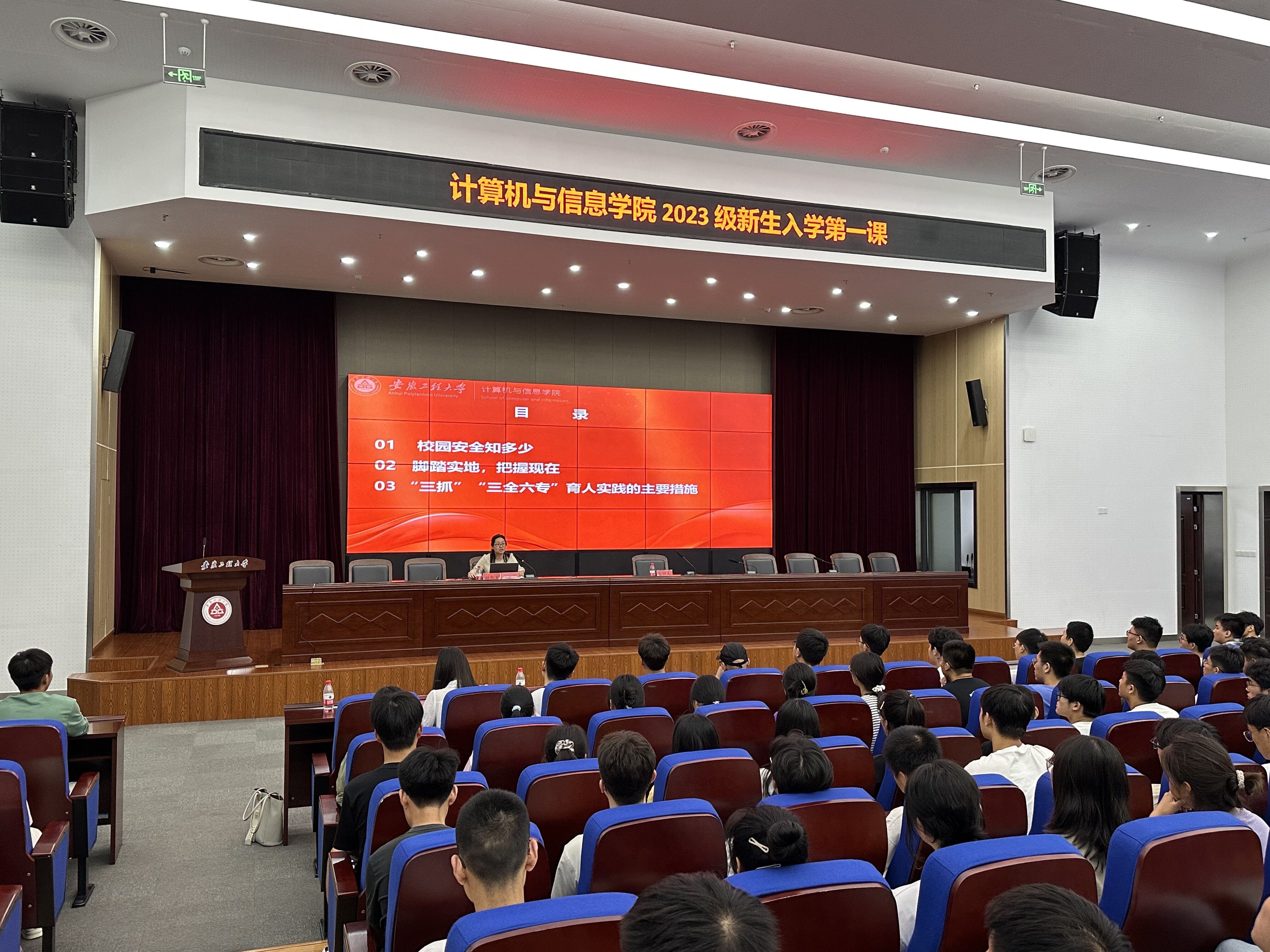 为上好新生入学教育的“第一课”,实现新生角色的快速转变,提升新生思想理论水平、校园法治文化、网络文明素养等,引导学生树立正确的世界观、人生观、价值观,提高综合素质,9月10日,计算机与信息学院2023级新生入校后就体验了一堂“‘E’路同行 青春筑梦”为主题的开学第一课。特别邀请鸠江区法院民二庭庭长孙云程为新生开展防诈骗专题报告。院党委书记李卫东、副书记孙德茹分别围绕入党启蒙教育和新生适应性教育进行讲解。团委书记、新生辅导员和全体2023级新生参加。