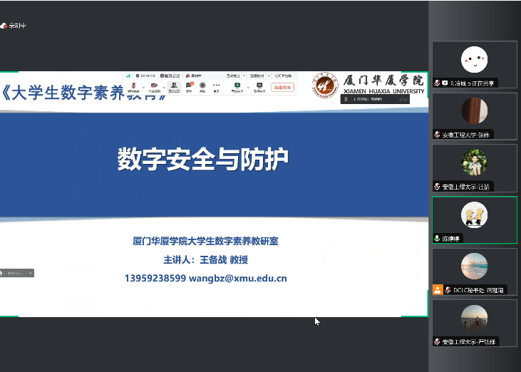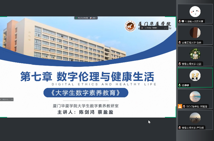 为促进高校间数字素养教育的交流与合作,计算机与信息学院与厦门华厦学院于2023年9月13日下午成功举办了名为“DCLC数字素养课程交流会”的活动。此次会议由全国高等学校计算机教育研究会数字化能力水平认证(DCLC)秘书处高级咨询顾问蒋珺雅主持,会议邀请到了厦门华厦学院王宁教授、李翠华教授、刘海翔教授、胡永红教授、陈婷婷助教进行课程教学交流,我院副院长刘涛、创新创业教育中心主任修宇、数字素养与技能中心主任汪婧及相关授课教师参加了此次会议。会议采用腾讯会议在线进行。