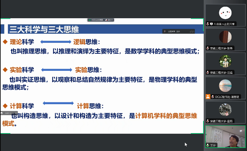 随后,李翠华从三大思维的角度介绍了计算思维的内涵与特征,并通过案例来展示计算思维中的算法、分解、抽象等基本要素。