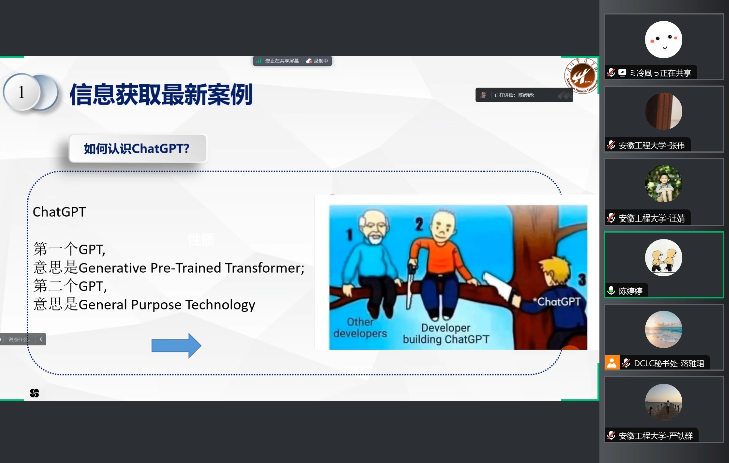 刘海翔在信息获取与评价部分通过换位思考和讲故事的方式生动地介绍了信息获取方式的发展,并强调通过英语原文了解各种技术的内涵。