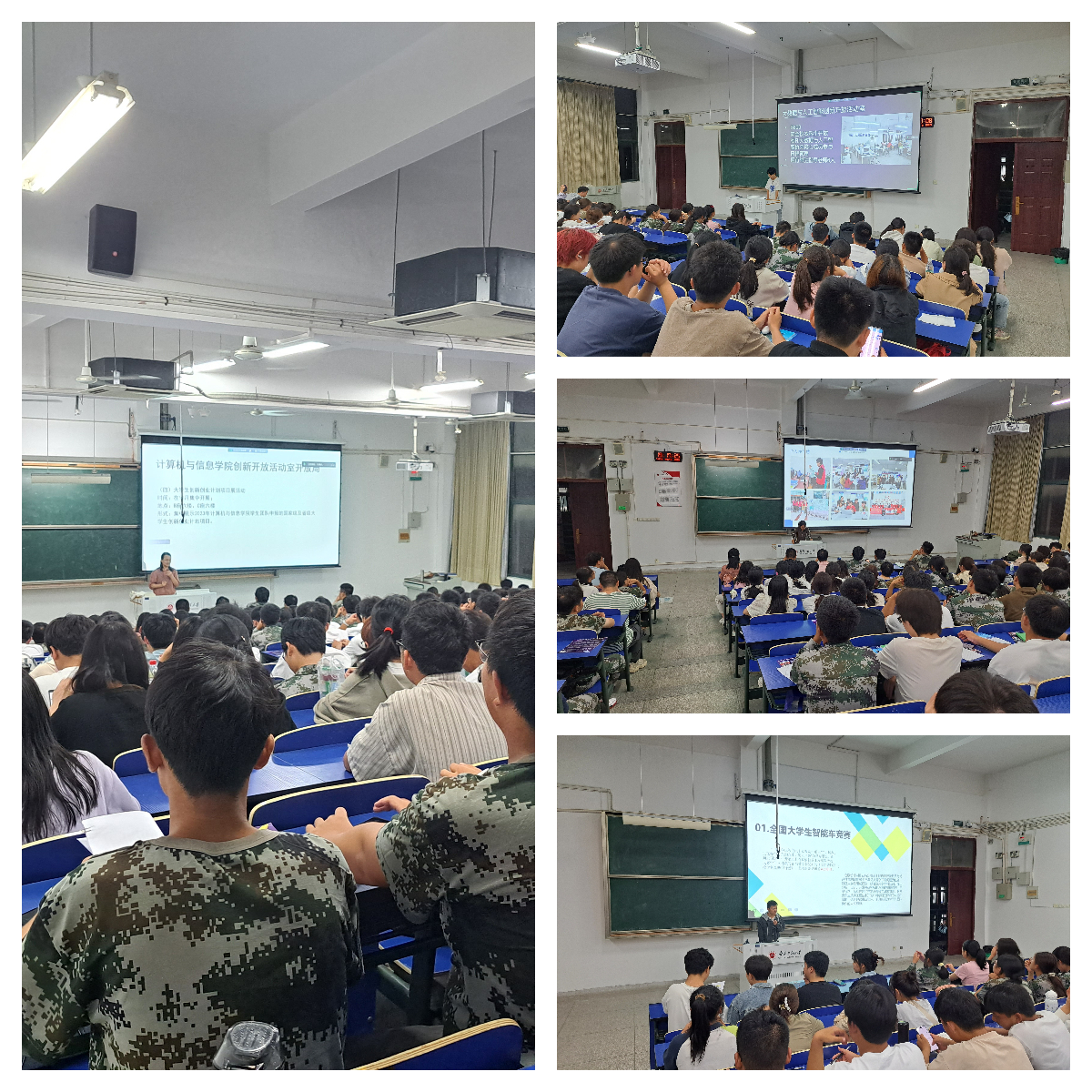 在创新开放活动室宣讲环节,计算机、智能车、物联网、软件与网络应用、机器人、大数据与人工智能、机器人、程序设计8个创新开放活动室的学生负责人分别介绍了各种活动室开展的特色活动、关注的赛事、荣誉、软硬件资源。院领导、创新创业教育中心教师代表、创新开放活动室学生代表、计算机与信息学院23级全体学生454人参加了本次活动。