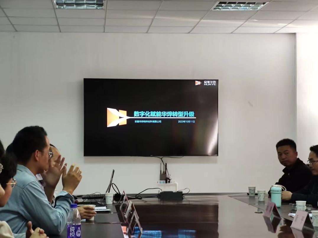 最后,企业专家引领师生来到了安徽华烨工业互联网数智中心,现场了解了安徽华烨特种材料有限公司的发展历程、数字化改革的阶段性成果、先进的生产工艺以及科研成果。