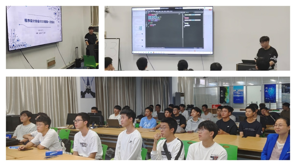 技术部部长江文豪同学主持了新生的首次程序设计培训。培训内容包括编译软件的安装、代码的格式规范、常见数据类型等方面的详尽介绍。江文豪同学不仅进行了现场演示和案例分析,还推荐了相关学习平台,帮助新生更好地入门编程领域。在培训过程中,活动室成员表现出极大的热情,积极提问并咨询有关未来竞赛的事宜,展示了卓越的学习风采。