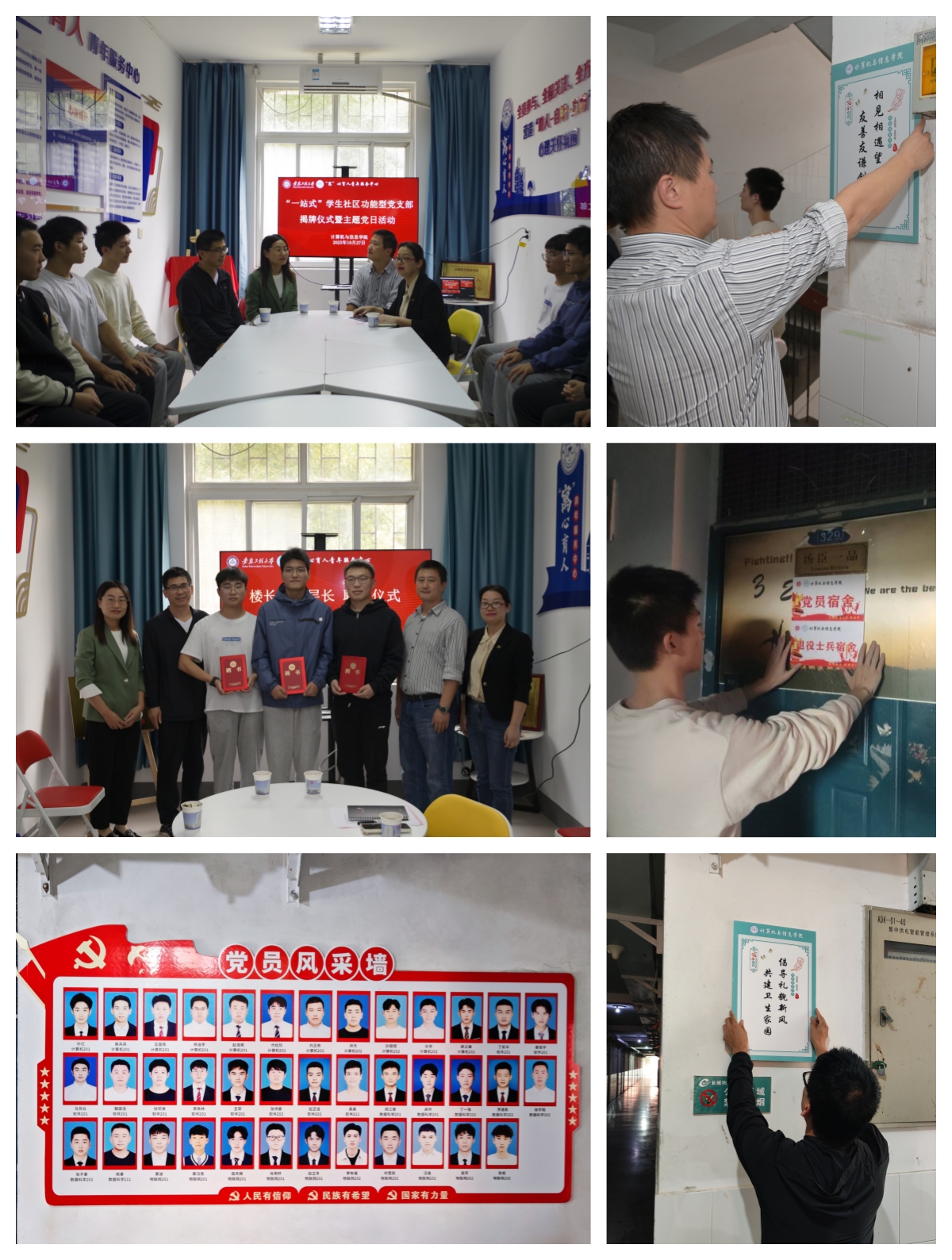 计算机与信息学院在“一站式”学生社区建设过程中,坚持“以学生为中心”的育人理念,强化“三全六专”育人实效,学院领导班子、“双带头人”教师党支部书记、辅导员、朋辈教育四方联动,下沉领导力量、思政力量、管理力量、服务力量到宿舍,夯实“阵地力量”,实现四方育人力量全覆盖,延伸思政育人新空间、构筑学生党建前沿阵地、打造“三全六专”实践园地、争创寝室文明建设样板高地,推动形成学生社区育人新生态,全方位助力学生全面发展。
