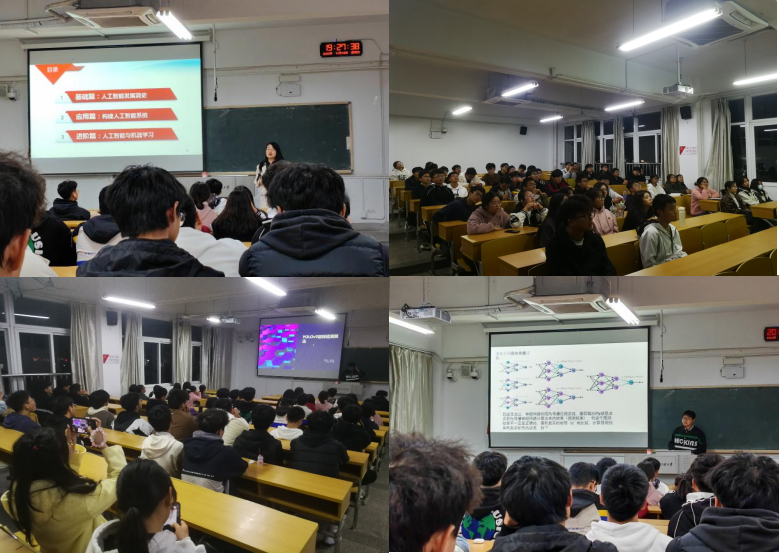 本次活动由软件与网络应用协会会长王明亮主持,活动室指导老师刘贵如、研究生学长李胜杰主讲,刘贵如讲解了人工智能的研究现状,分析了国家针对人工智能研究的方针政策;带领同学们了解了人工智能的发展史,介绍了从人工智能的定义到机器学习的方法,加深了同学们对人工智能的理解;最后从“特征与分类器”、“识图认物”、“析音赏乐”、“看懂视频”四个方面讲解人工智能系统涉及的基础算法及相关应用。李胜杰介绍了目标与目标定位的方法,主要介绍了YOLOv5模型,数据集、训练流程、模型优化等四个方面,并以他所研究的道路缺陷检测为例介绍了YOLOv5目标检测算法应用的具体流程。