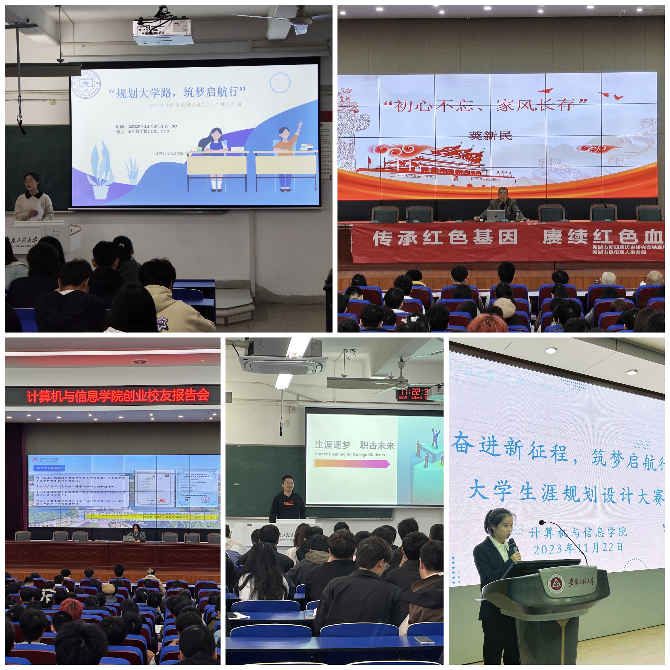 为帮助新生更好地规划大学生涯,深刻了解自己,树立大学目标,引导广大学生树立正确的成才观、择业观和就业观,11月22日,计算机与信息学院在5J117教室举办了2023年大学生涯规划设计大赛决赛,本次活动也是学院大学生涯规划系列活动的收官之作。学院2023级大学生涯规划系列活动通过主题班会、“学长学姐面对面”、创业校友分享会、离退休党员荚新民老师报告会等专题讲座、生涯规划设计大赛等方式开展。决赛现场邀请了学生处学生管理科刘畅、材料科学与工程学院陶冶、教务处学籍管理科彭安琪、院团委吕寅、陈涛担任决赛评委。经过现场评审,最终评出一等奖2人,二等奖5人,三等奖5人。