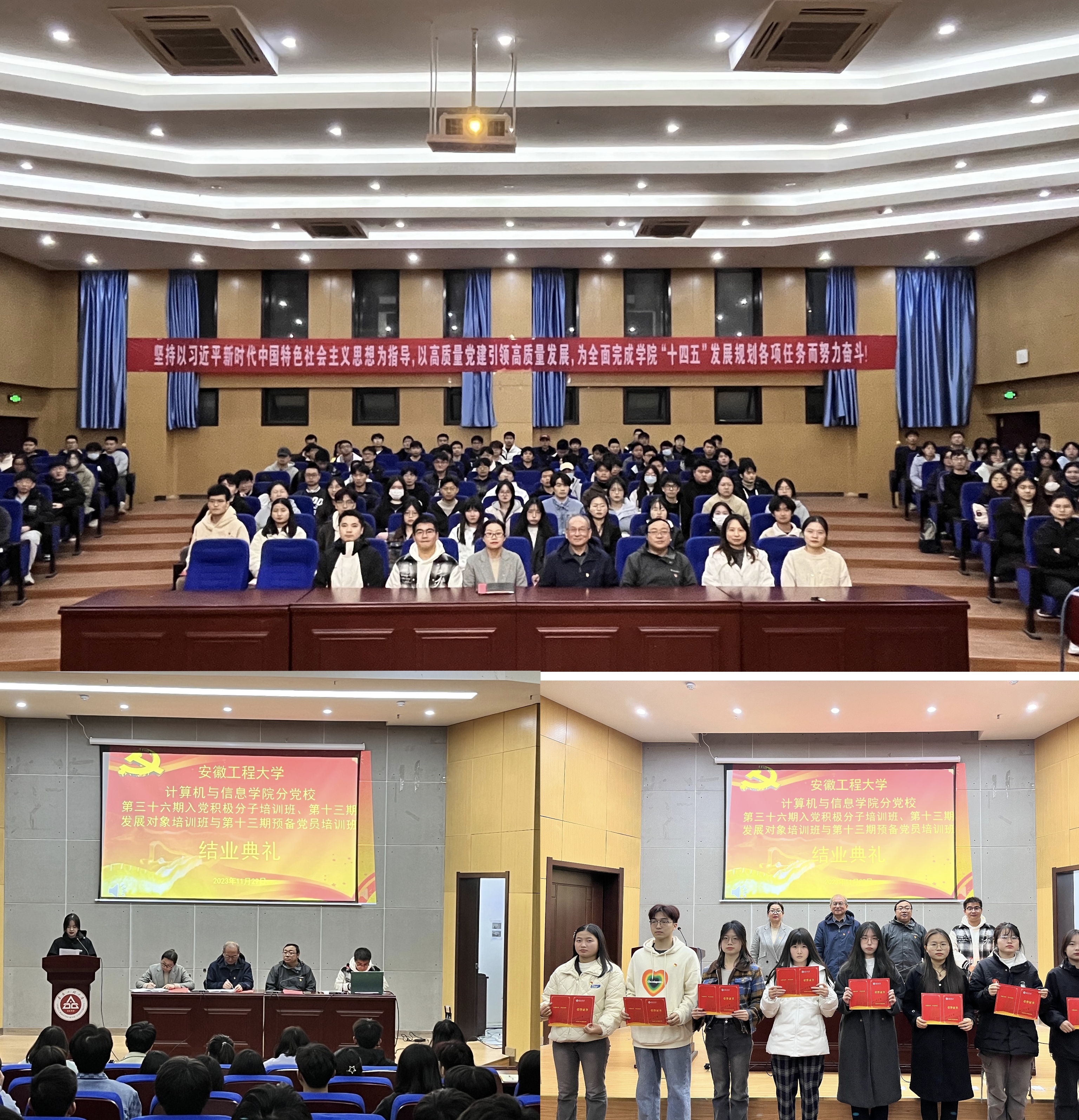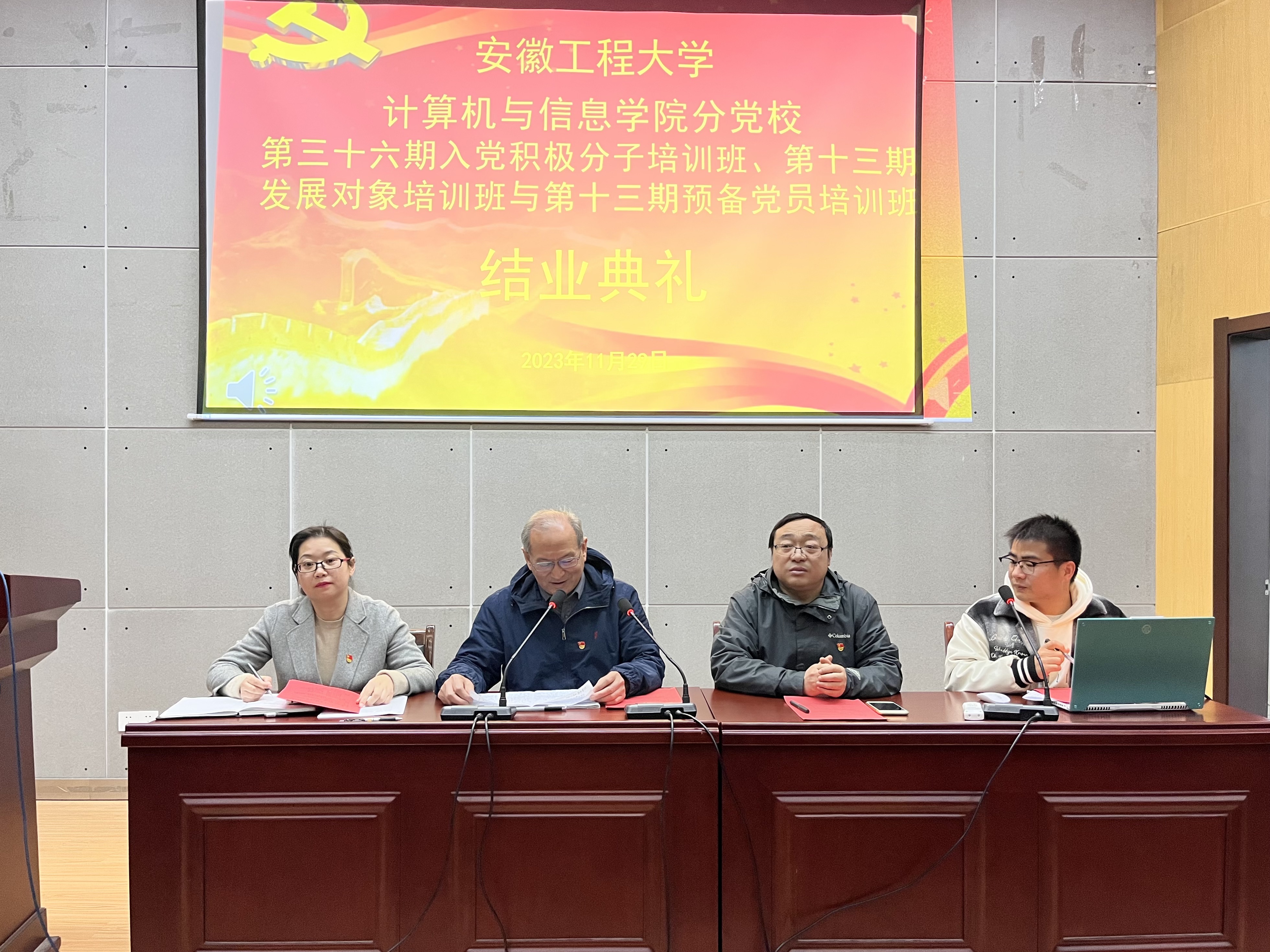 为深入推进学校“三全六专”育人实践,提升党员发展质量,引导学生“正”起来,11月29日,计算机与信息学院分党校第三十六期入党积极分子、十三期发展对象与十三期预备党员培训班结业典礼在C座5楼报告厅举行,校党校第三督导组组长寿达军老师,院党委书记李卫东、副书记孙德茹,本期培训班班主任魏晓飞、承孝云、孙力力以及培训班全体学员参加。