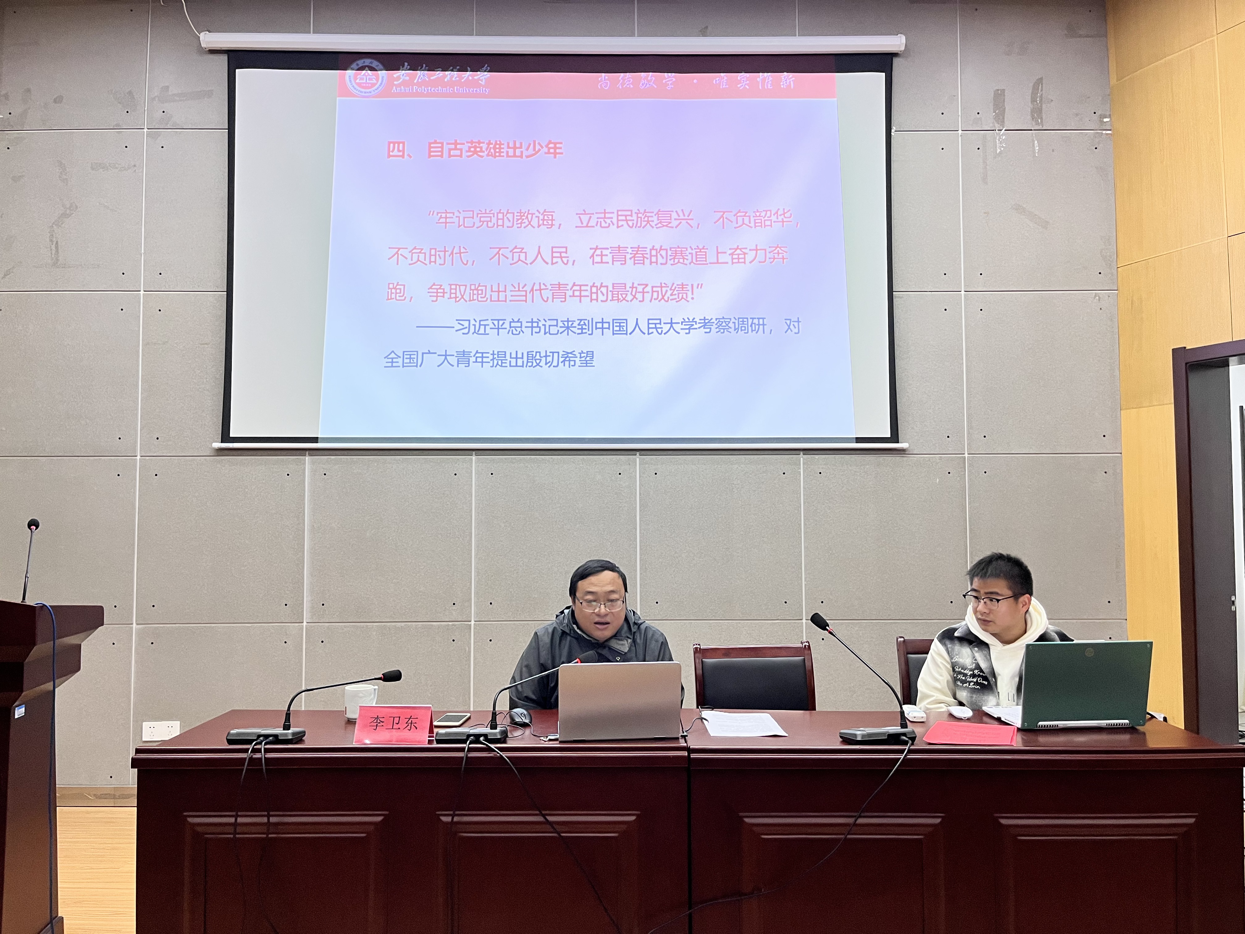 结业典礼开始前,李卫东以“习近平总书记的‘青年观’”为主题做专题党课,围绕“坚定理想信念”、“践行初心使命”等方面引导学员树立正确的入党动机,他结合当前国际形势,和同学们交流自己的感受,同时对同学们寄予厚望,表示“青年生逢其时,重任在肩,要奋勇争先,顽强拼搏”。