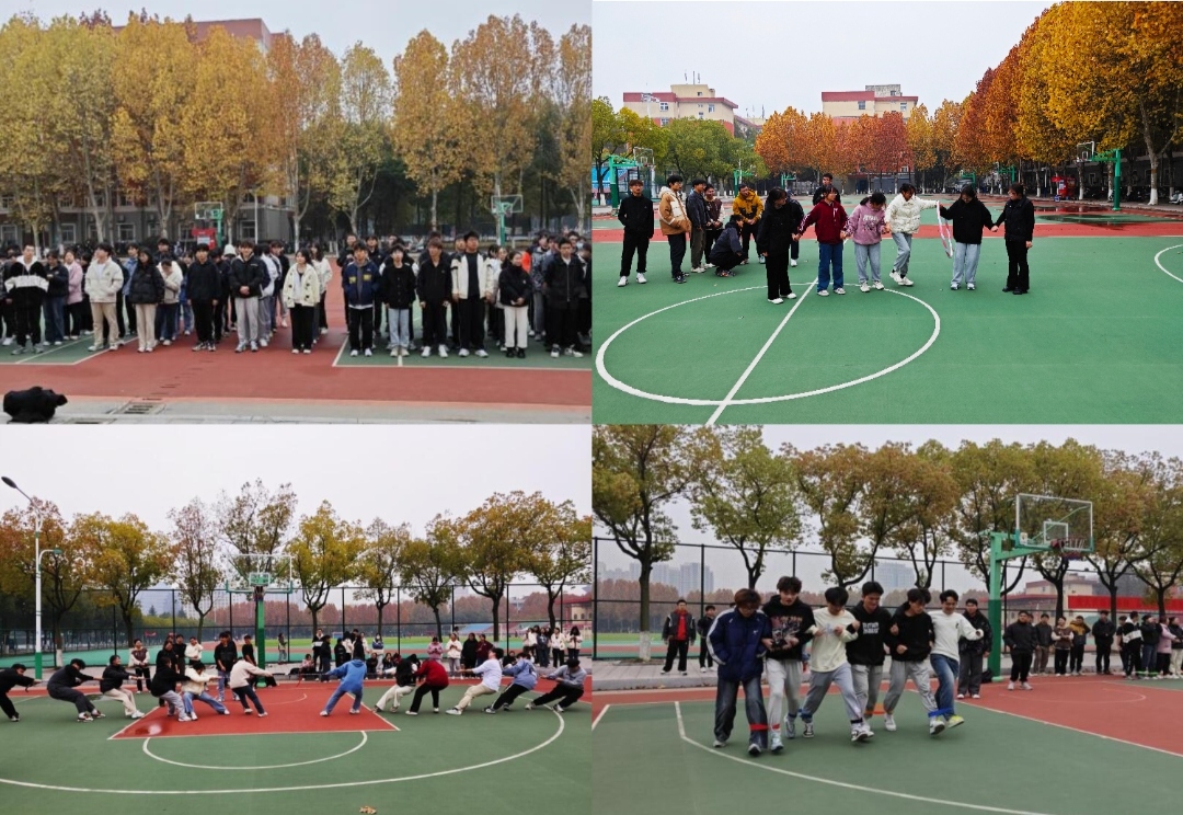 11月底,学院在校篮球场举办心理趣味运动会,本次运动会共有19支队伍,114人参加。运动会包括拔河、花样跳绳、两人三足、倒跑接力、呼啦圈过山车等富有创意和趣味性的项目,让同学们在比赛中挥洒汗水,增强体质,健全人格,锤炼意志。