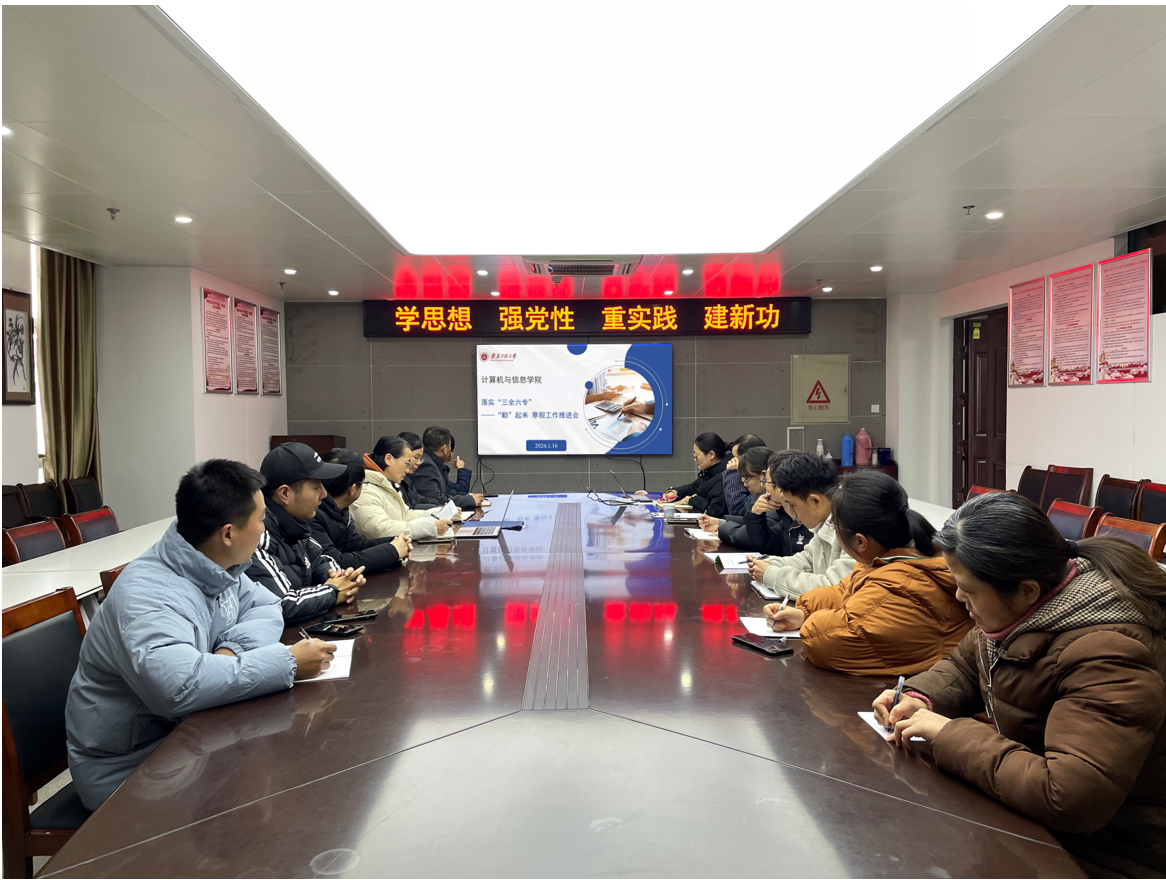 为全面贯彻党的教育方针,坚持立德树人,落实“三全六专”育人理念,深化劳动教育实践,教育引导我院学生热爱劳动、尊重劳动、崇尚劳动,促进学生全面发展,1月16日下午,计算机与信息学院在C622会议室召开了2023-2024 学年寒假“家校一体化,劳动不放假”劳动教育实践活动工作推进会。会议由副院长刘涛主持,相关本科生导师参加了此次会议。