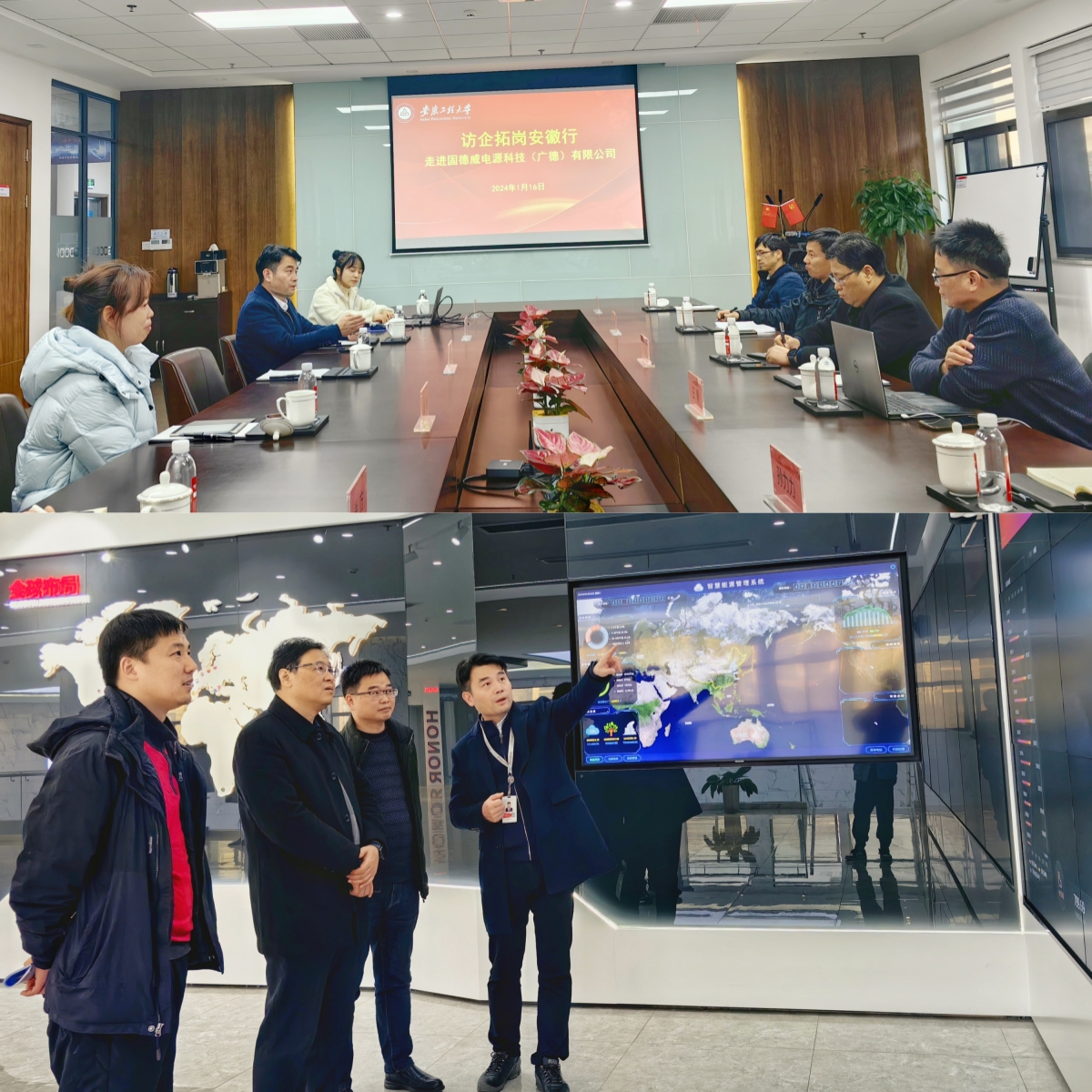 1月16日,院长汪军、副院长王勇带领专业教师和毕业班辅导员赴固德威电源科技(广德)有限公司、广德泓益智能制造有限公司开展访企拓岗活动。