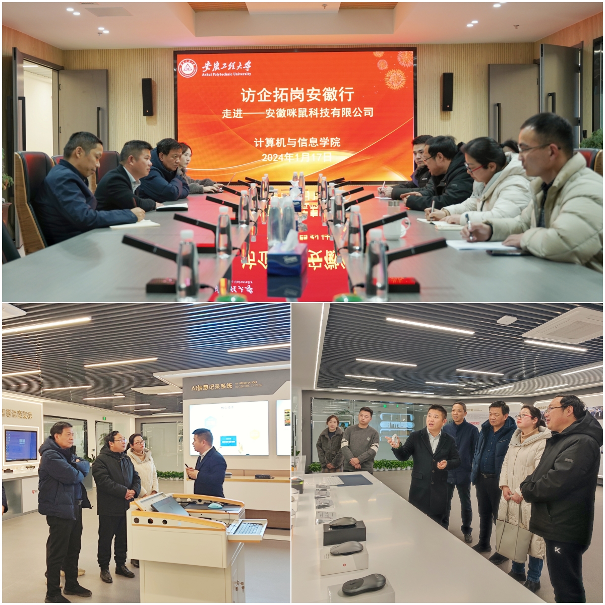 1月17日上午,学院党委书记李卫东、副书记孙德茹和毕业班辅导员一行赴合肥市公共就业人才服务管理中心和安徽咪鼠科技有限公司开展访企拓岗活动。