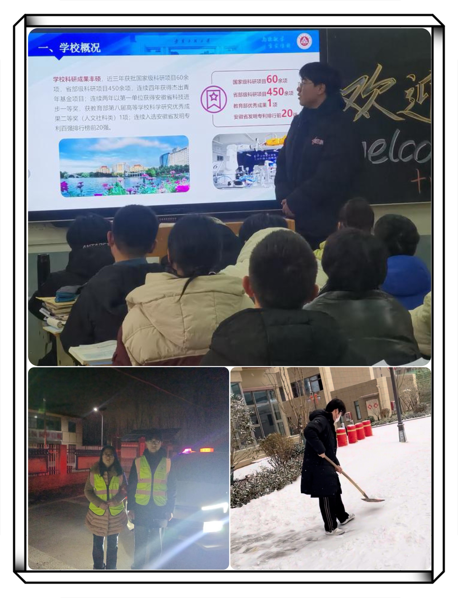 在志愿服务方面,学生积极参与回高中母校进行招生宣传活动、参与社区夜间巡逻以及清扫社区积雪等志愿服务,从中体验到了志愿工作的艰辛。