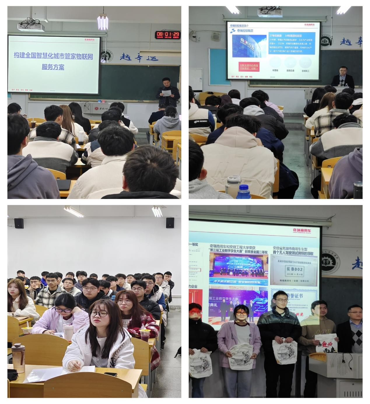成彬以构建全国智慧化城市管家物联网服务方案为主题,围绕项目概述及前景、项目技术能力、解决方案、技术应用、技术评价等方面展开。奇瑞依托在专用车制造领域的优势,提供了智慧化城市管家物联网服务方案,将物联网技术与城市管理紧密结合,为智慧城市建设提供了有力的技术支撑。同学们被该方案的创意性深深吸引,同时对奇瑞集团的各项业务表现出浓厚的兴趣。