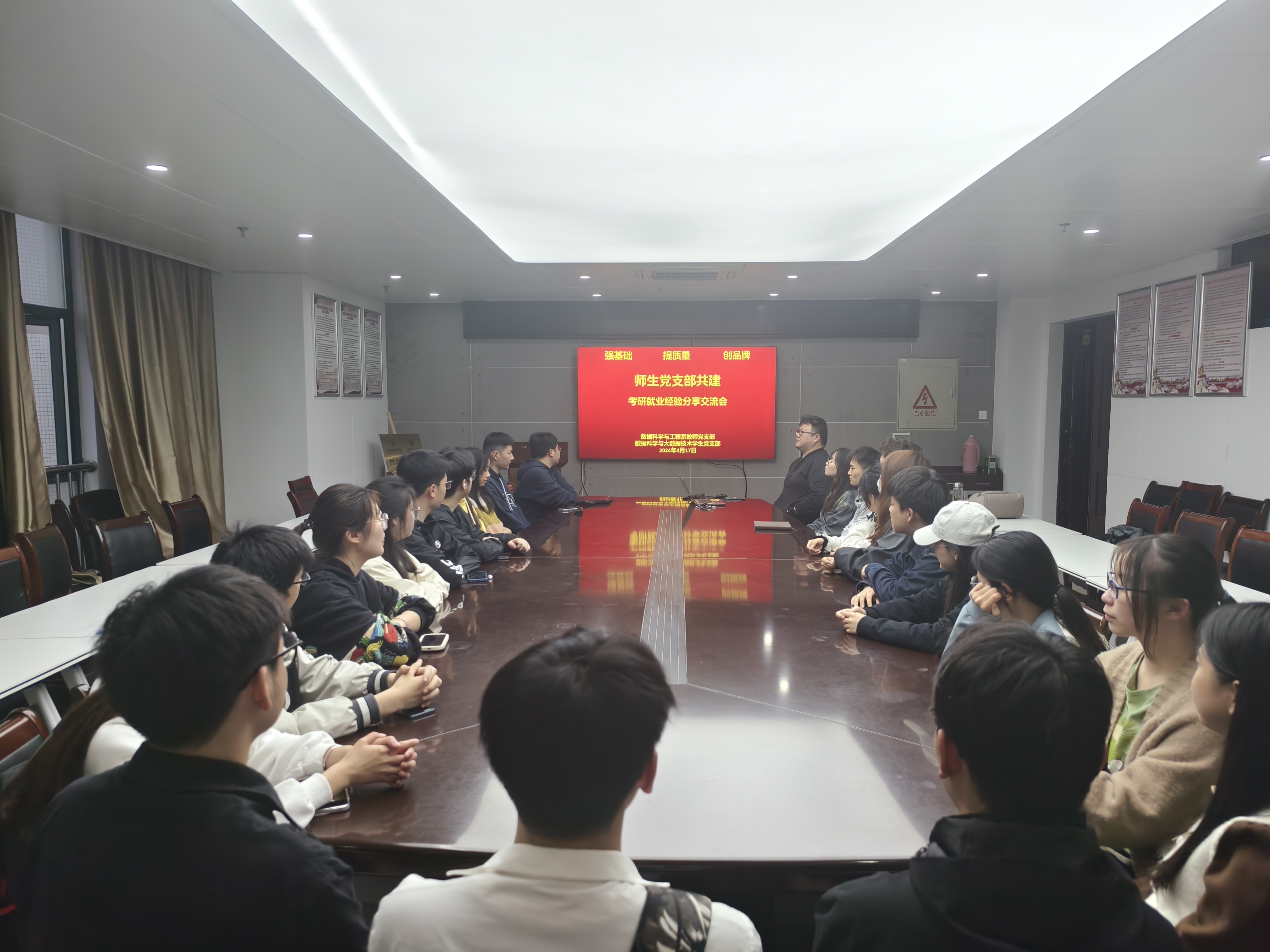 在交流环节,党支部邀请拟录取至西北大学、上海工程技术大学的鲍一凡、江源源和顺利就业的刘起杰同学分别从复试备考,调剂经验,求职就业等方面进行分享。鲍一凡、江源源结合心路历程从考研院校的筛选,各科目的复习方法,考研资料的收集,面试注意事项向大三同学们进行了全面细致的分析分享,并提醒同学如果未来被迫调剂需要防范虚假信息,预防诈骗。刘起杰泽结合自身求职经理介绍笔试、面试的流程和注意事项,他建议在每同学要根据自己的性格、能力确定就职方向,优化个人简历,敢于积极的向企业投递简历,求职过程难免遭遇挫折和失败,大家更要总结经验教训,迎难而上。承孝云则围绕大家的在考研就业过程中可能遇到的心理压力,讲解如何调整心态,缓解压力,保持积极向上的精神状态。