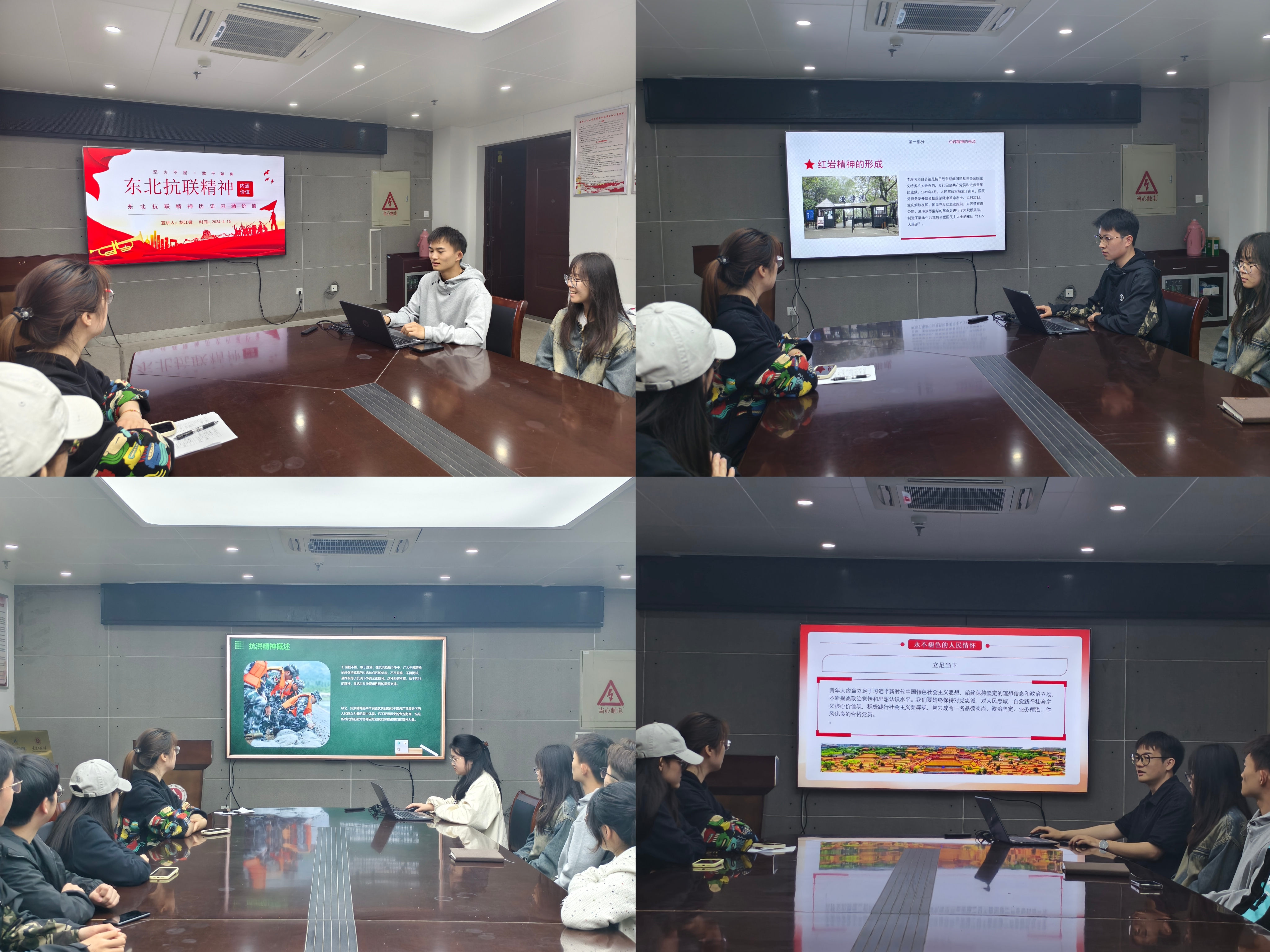 座谈会结束,党支部开展第5次“中国共产党人精神谱系”系列微党课分享,胡江徽等4位同学围绕“红岩精神”、“抗洪精神”、“东北抗联精神”进行分享。