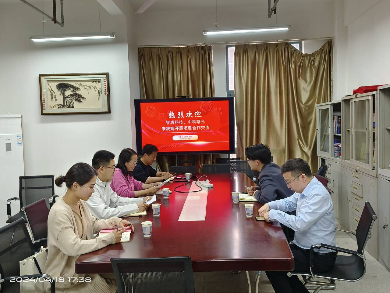 4月18日,计算机与信息学院与智唐科技、中科曙光在C座608开展校企合作交流活动。智唐科技、中科曙光相关负责人,计算机与信息学院副院长刘涛、物联网工程系主任章平、副主任包象琳、计算机科学与工程系副主任刘进等参加了本次交流活动,共同探讨了人才培养、科研合作、实习实训等关键议题。
