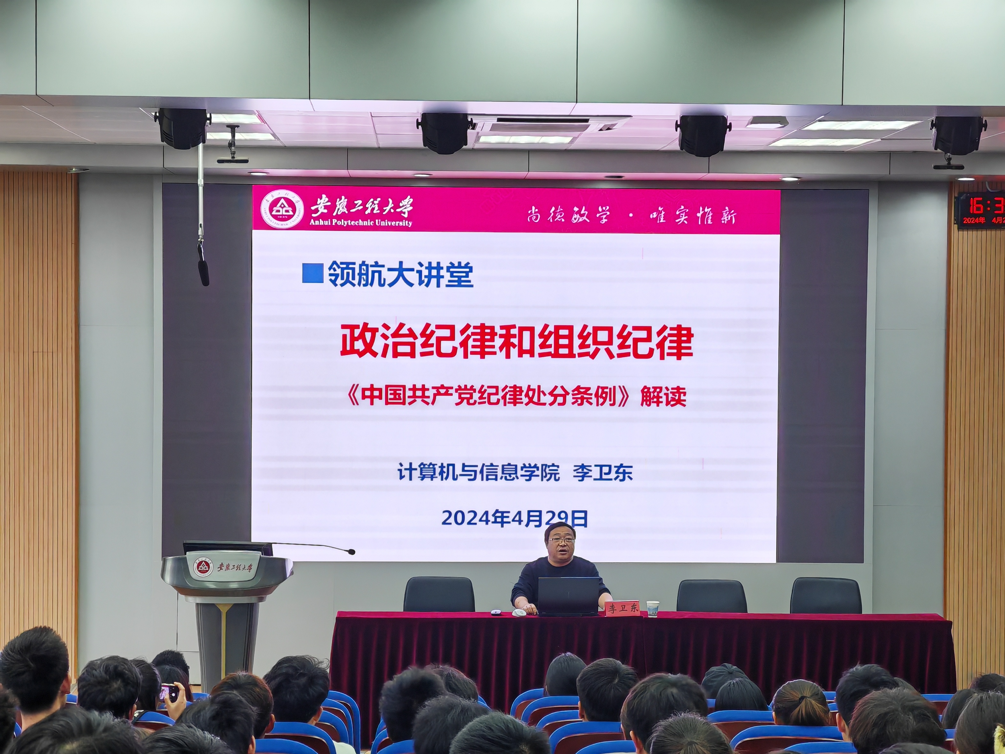 李卫东为学员们上了专题党课,通过解读《中国共产党纪律处分条例》,深入阐述党员的政治纪律和组织纪律,他表示,大家要严格执行和维护党的纪律,自觉将纪律要求内化于心、外化于行,强化自我约束,提高免疫能力,凝聚干事创业的精气神,在新时代新征程上做出新贡献。