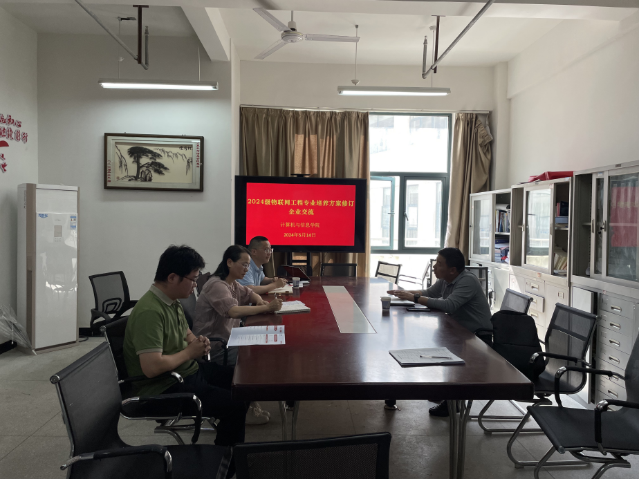 为做好2024级本科专业人才培养方案的修订工作,5月14日,物联网工程系邀请新道科技股份有限公司安徽省区校企合作总监康阿朋对物联网专业的培养方案进行交流。计算机与信息学院刘涛副院长、物联网工程系刘三民教授以及教师陈蒙参加会议。