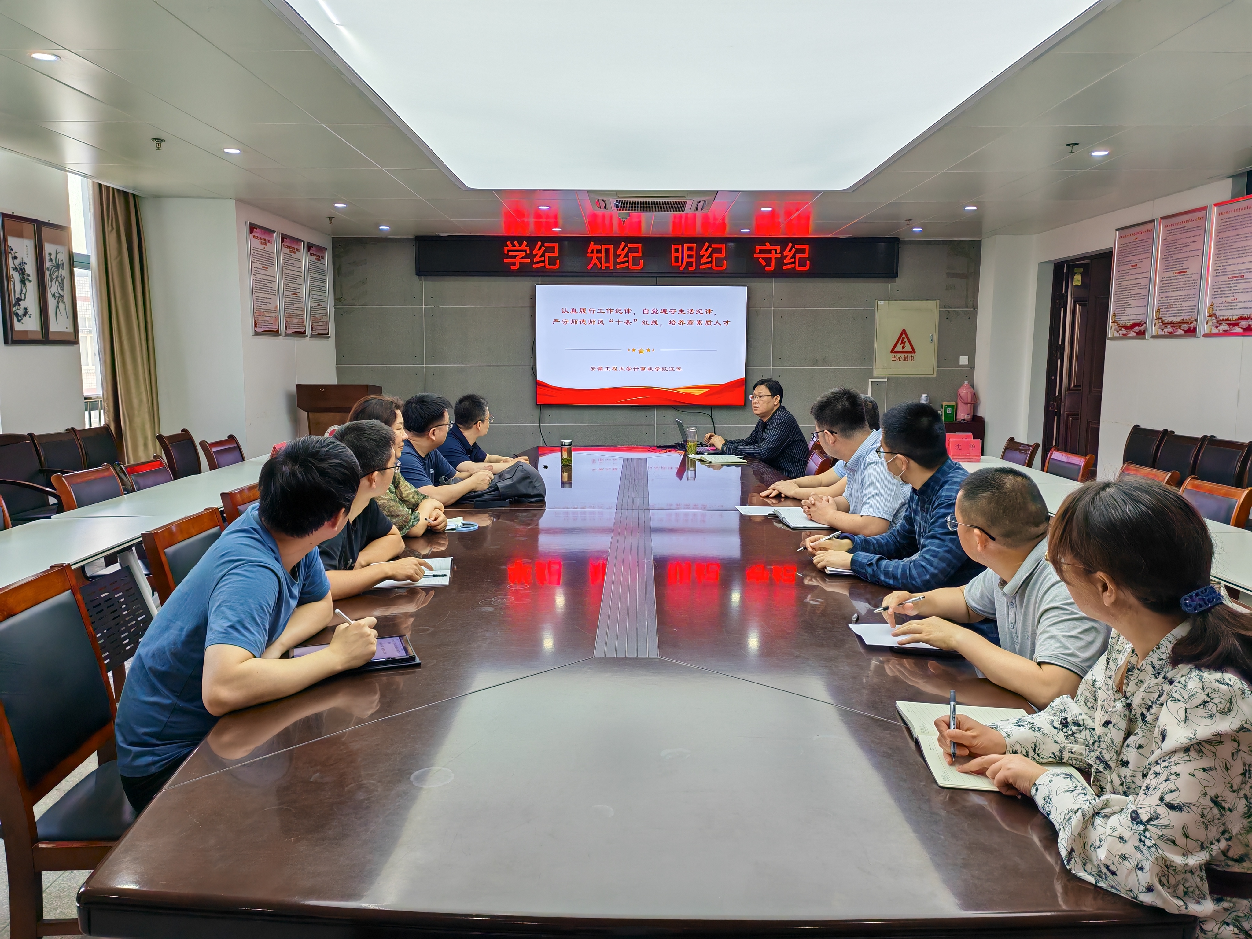 为加强师德师风建设,深入开展师德师风警示教育,5月17日,计算机与信息学院院长汪军在学院会议室开展题为“认真履行工作纪律,自觉遵守生活纪律,严守师德师风‘十条’红线,培养高素质人才”的师德师风专题教育。会议由汪军主持,学院全体硕士研究生导师参加。