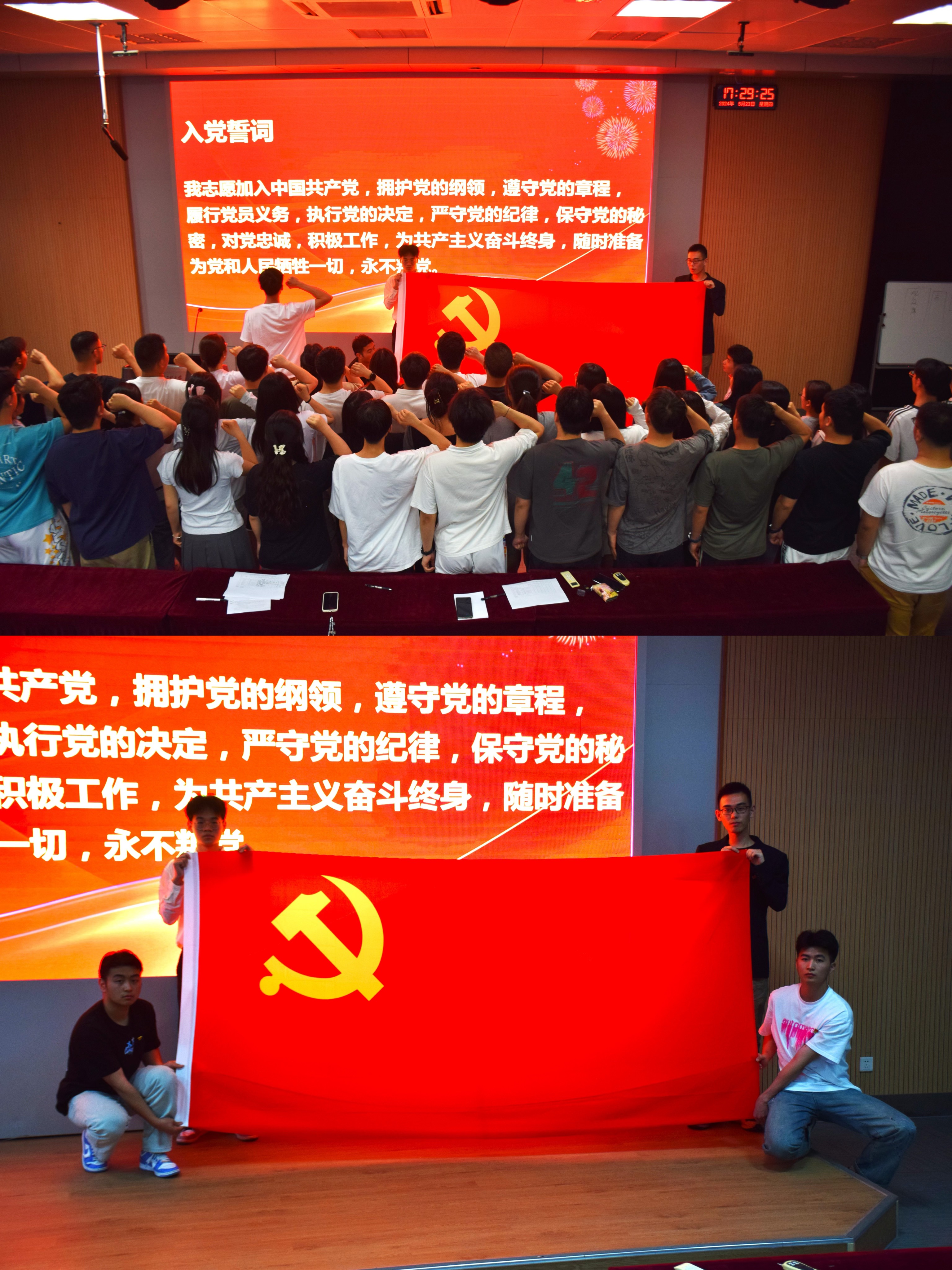 为推动学生党员的党纪学习教育走深走实,激发毕业生党员的使命担当意识,走上新征程,5月23日,计算机与信息学院开展了“毕业生党员”教育系列活动。本次活动包含重温入党誓词、微党课比赛、信仰与青春同行“毕业党课”等活动。学院党委副书记孙德茹、辅导员及全体毕业生党员参加。