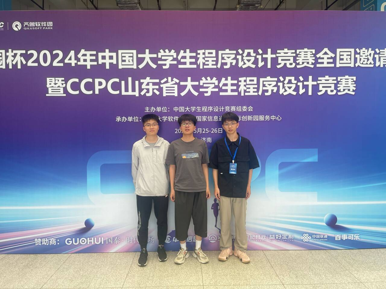 5月26日,中国大学生程序设计竞赛(CCPC)全国邀请赛在山东济南举行。本次比赛由山东大学承办,吸引了来自全国150余所高校459支队伍报名参加比赛。我校计算机与信息学院的学生程辉(计算机20)、石鹏(软件21)、周子豪(软件22)组成代表队,在张丽平老师的指导下,表现出色,荣获铜奖。