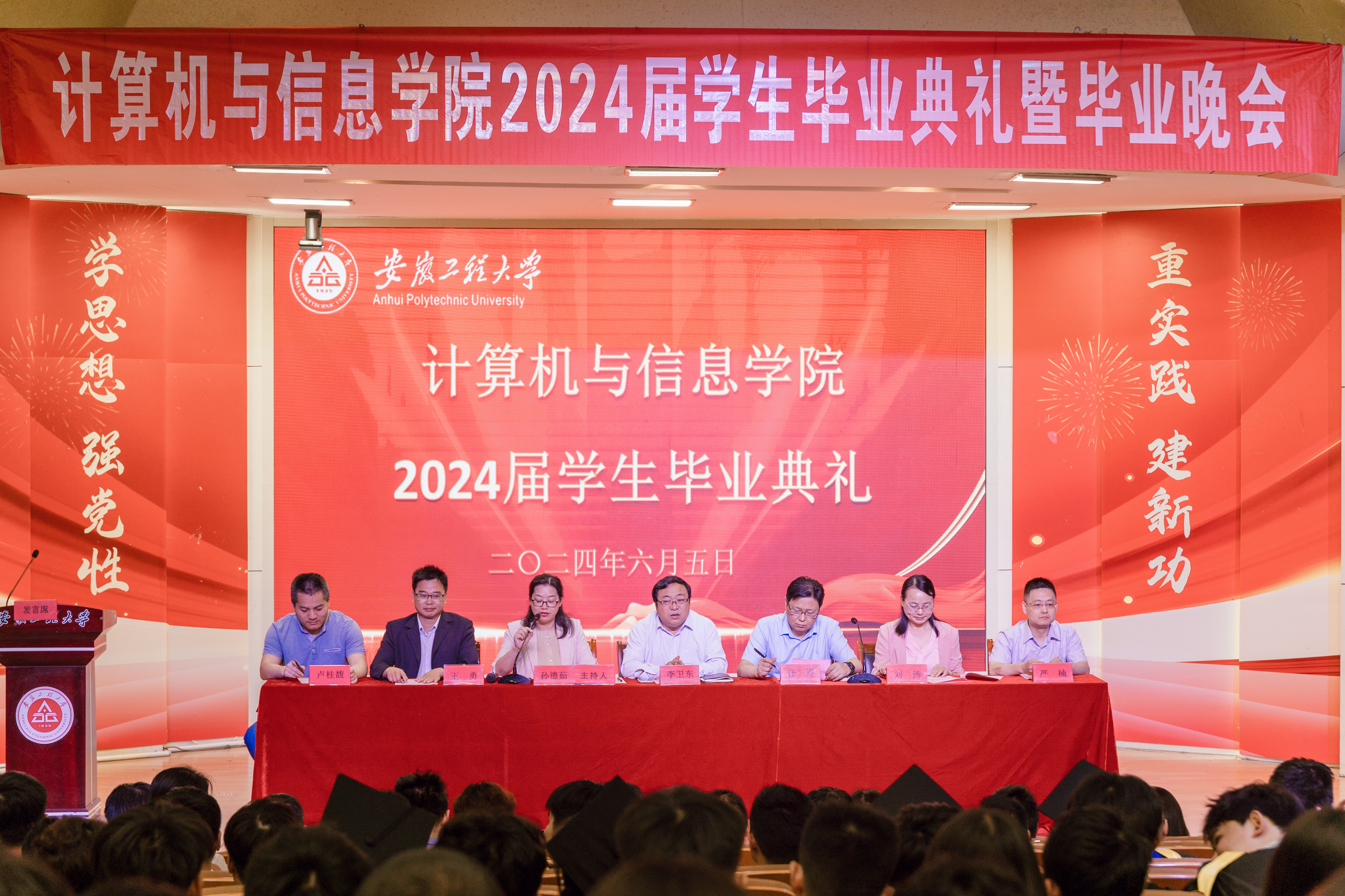 花开半夏,似水年华,云程发轫,万里可期。6月5日,计算机与信息学院在学术报告厅为379名2024届毕业生隆重举行毕业典礼,院党委书记李卫东,院党委副书记、院长汪军,院党委副书记、纪委书记孙德茹,副院长刘涛、院长助理严楠、硕士生导师代表王勇、学院教授委员会主任卢桂馥,各系主任、副主任、教师代表、全体辅导员出席典礼。毕业典礼由孙德茹主持。